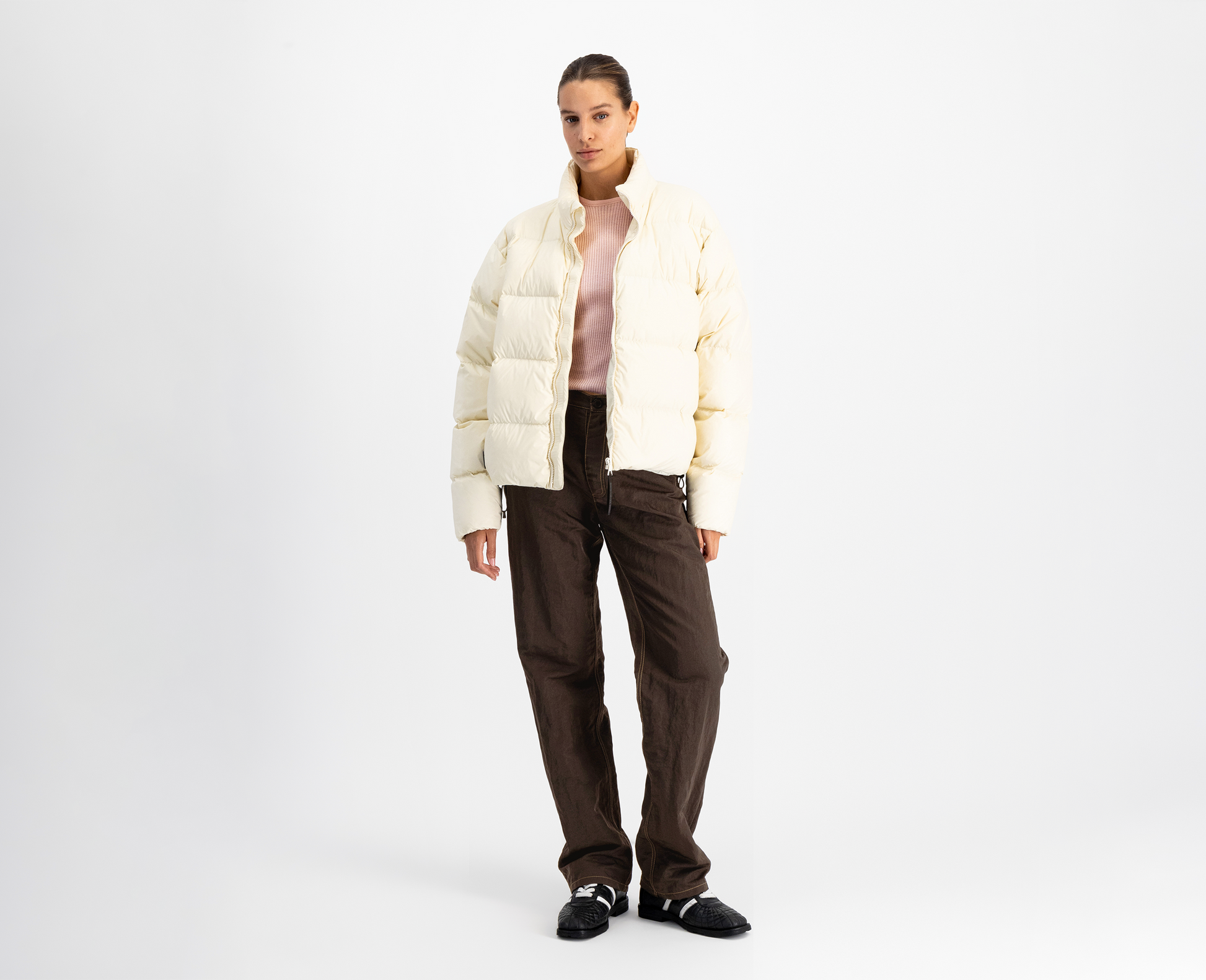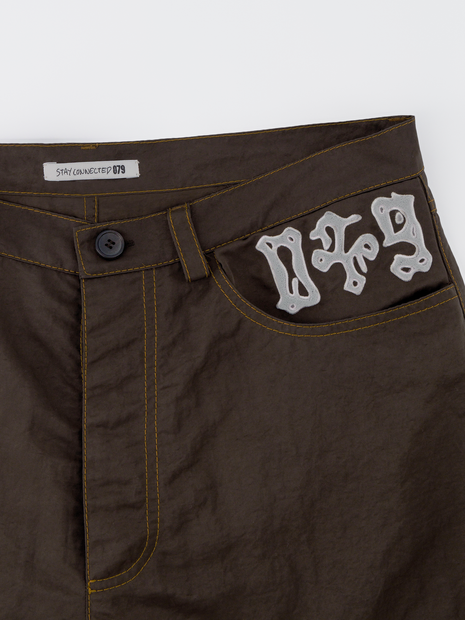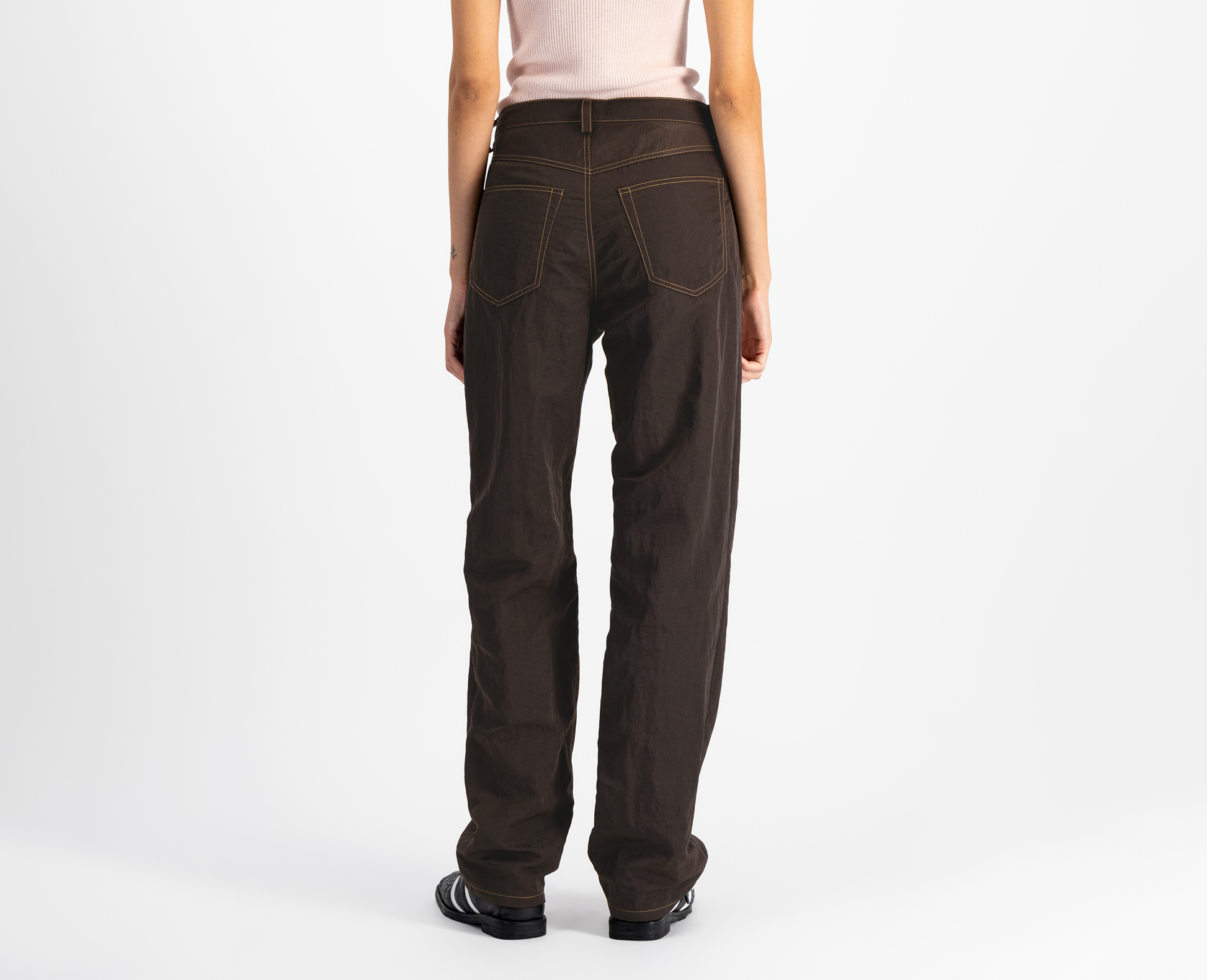 Straight cut nylon jeans with logo embroidery. Made in Switzerland.