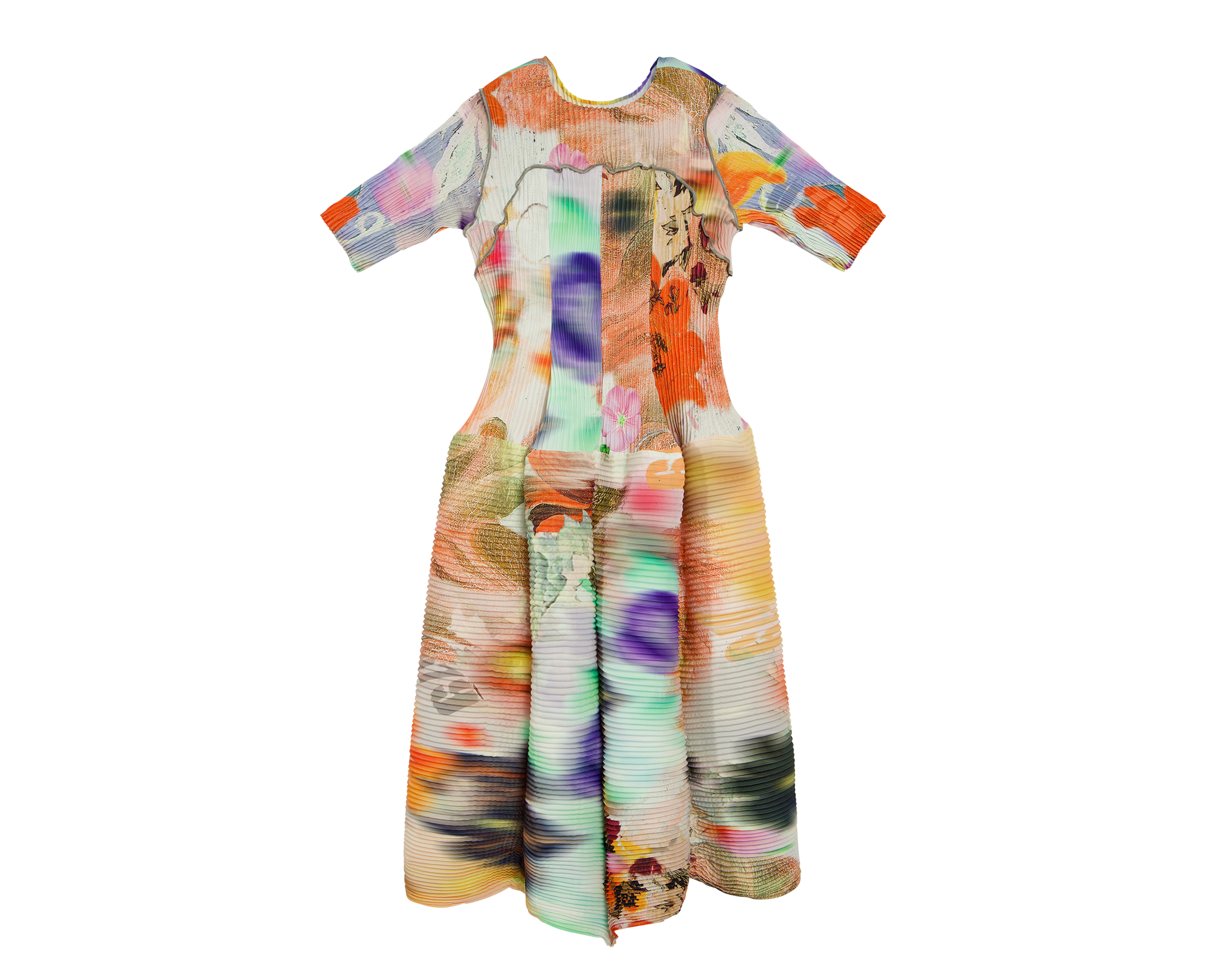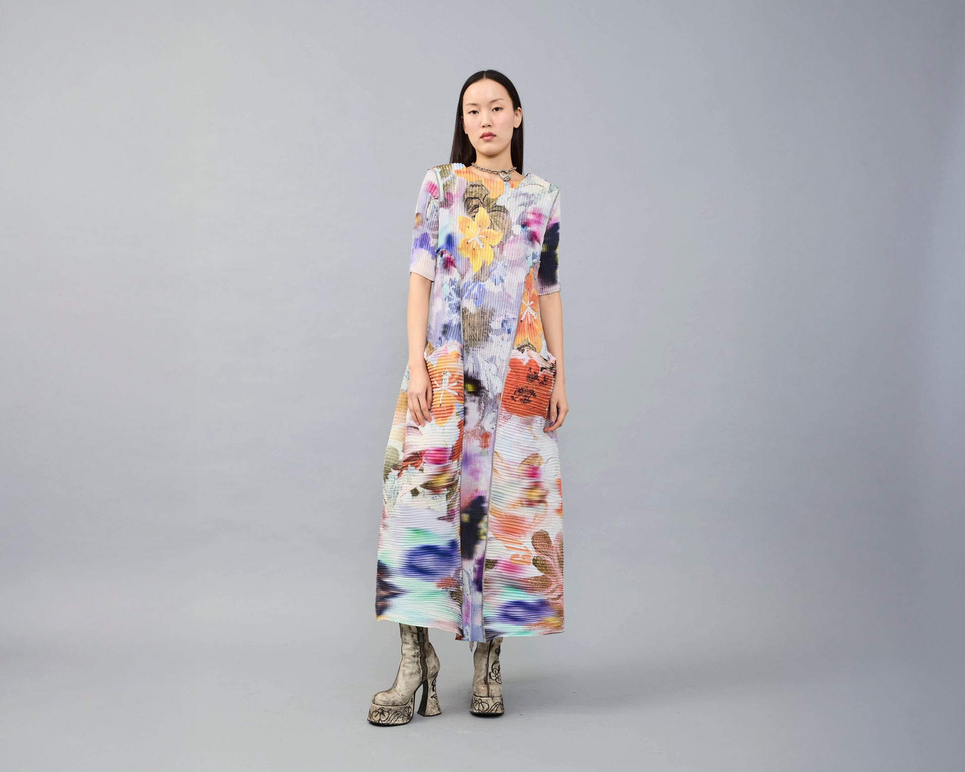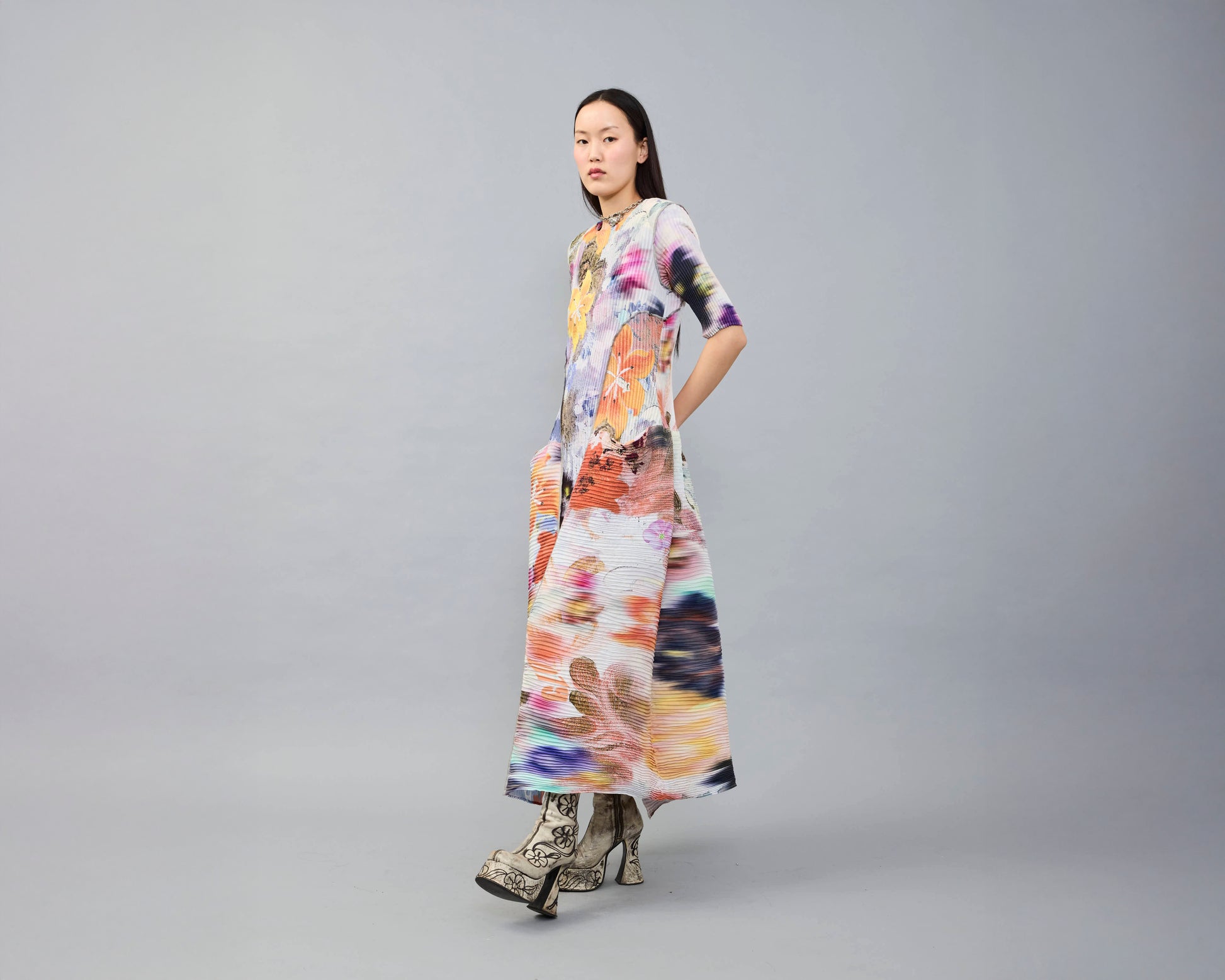 Damen handplissiertes Kleid Uma in Lilia, mehrfarbig