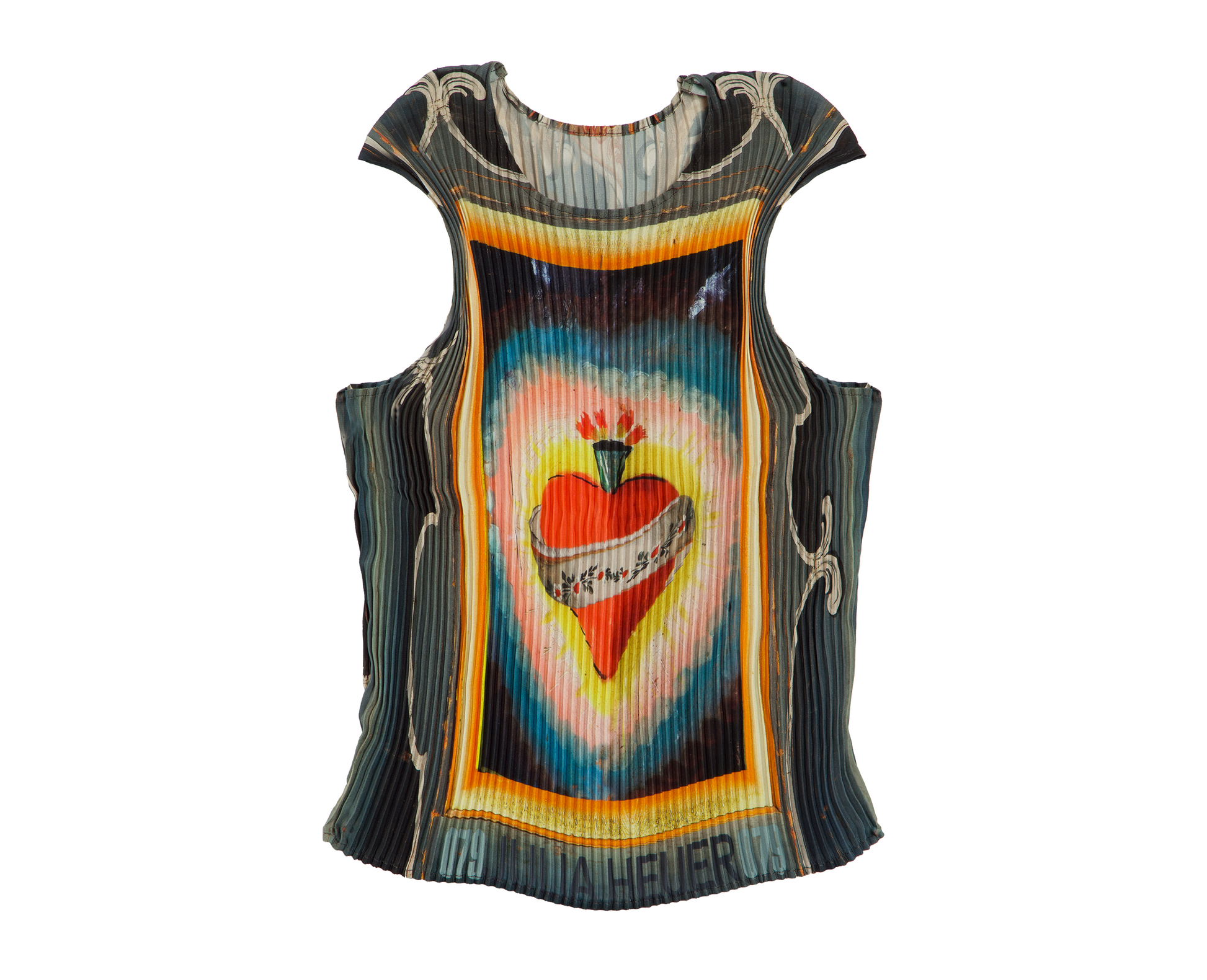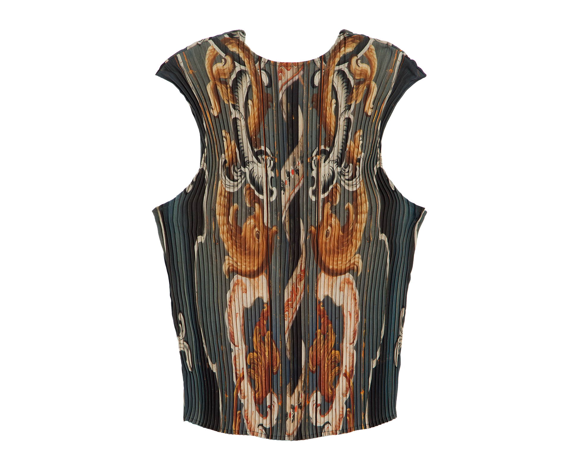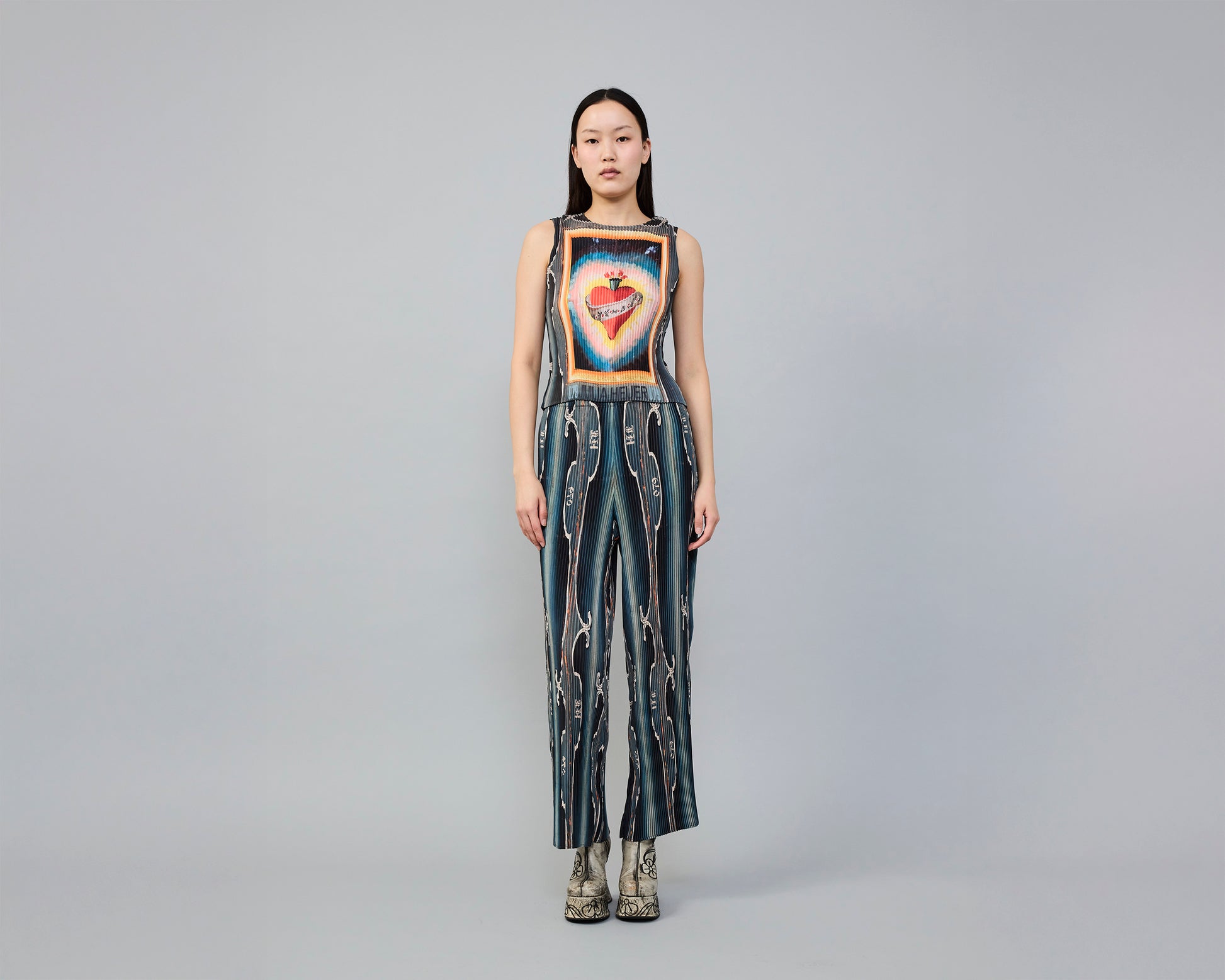 Ärmelloses Plissee-Top mit Allover Print und und gerader Passform.