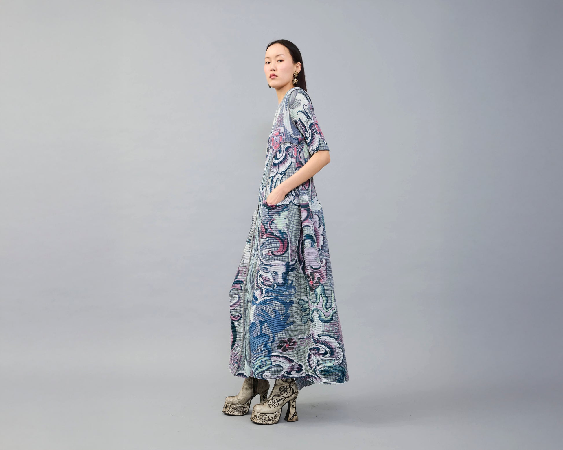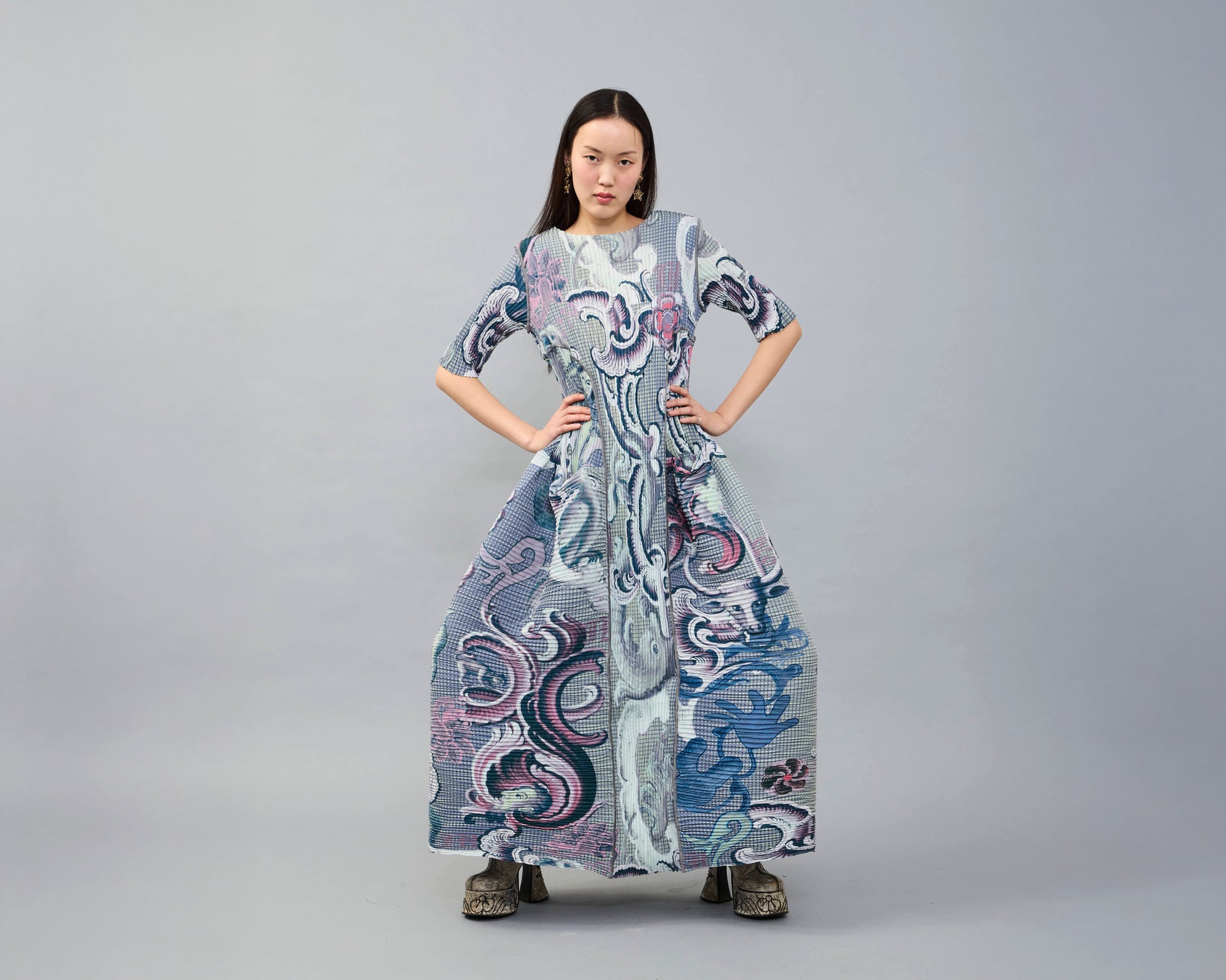 Damen handplissiertes Kleid Uma in Quentin, mehrfarbig