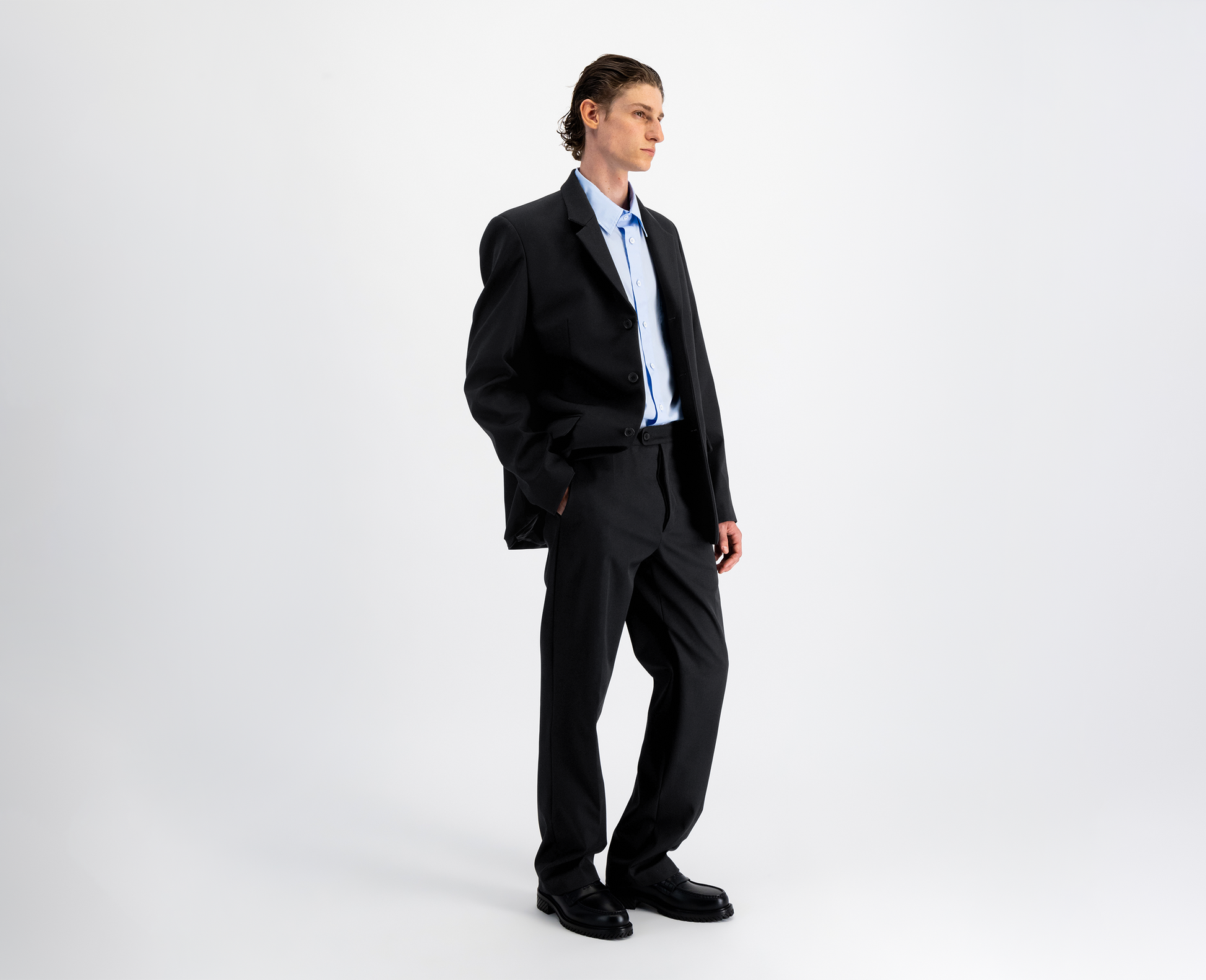 Oversized blazer made from 56% virgin wool, straight unisex fit. Made in Switzerland.