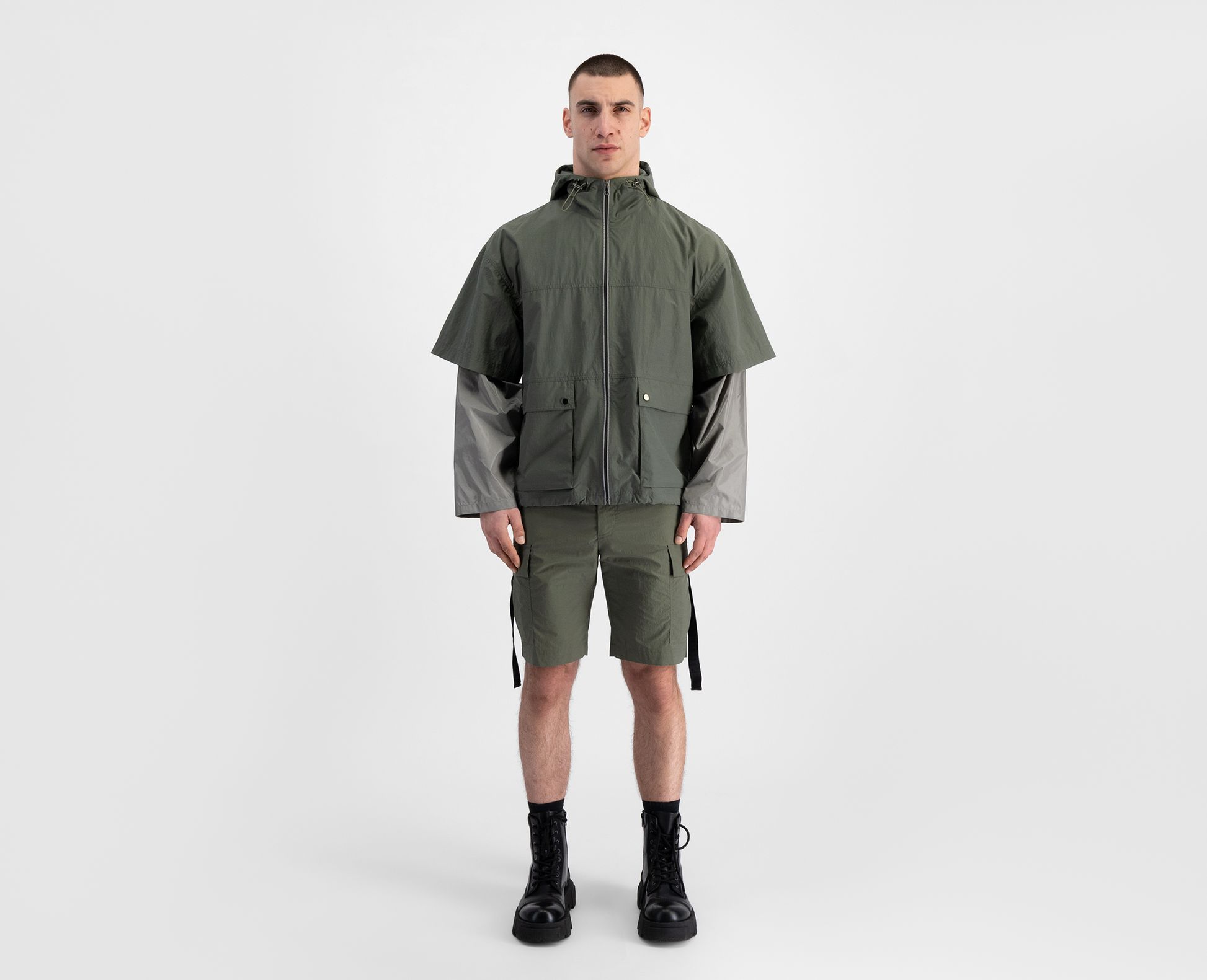 Lightweight jacket with a loose fit, adjustable hem and hood. Made in Switzerland.