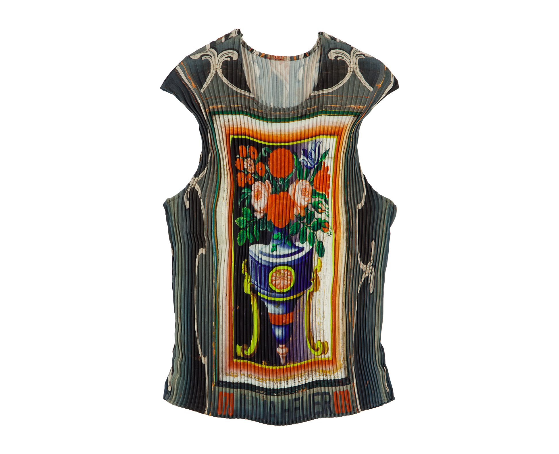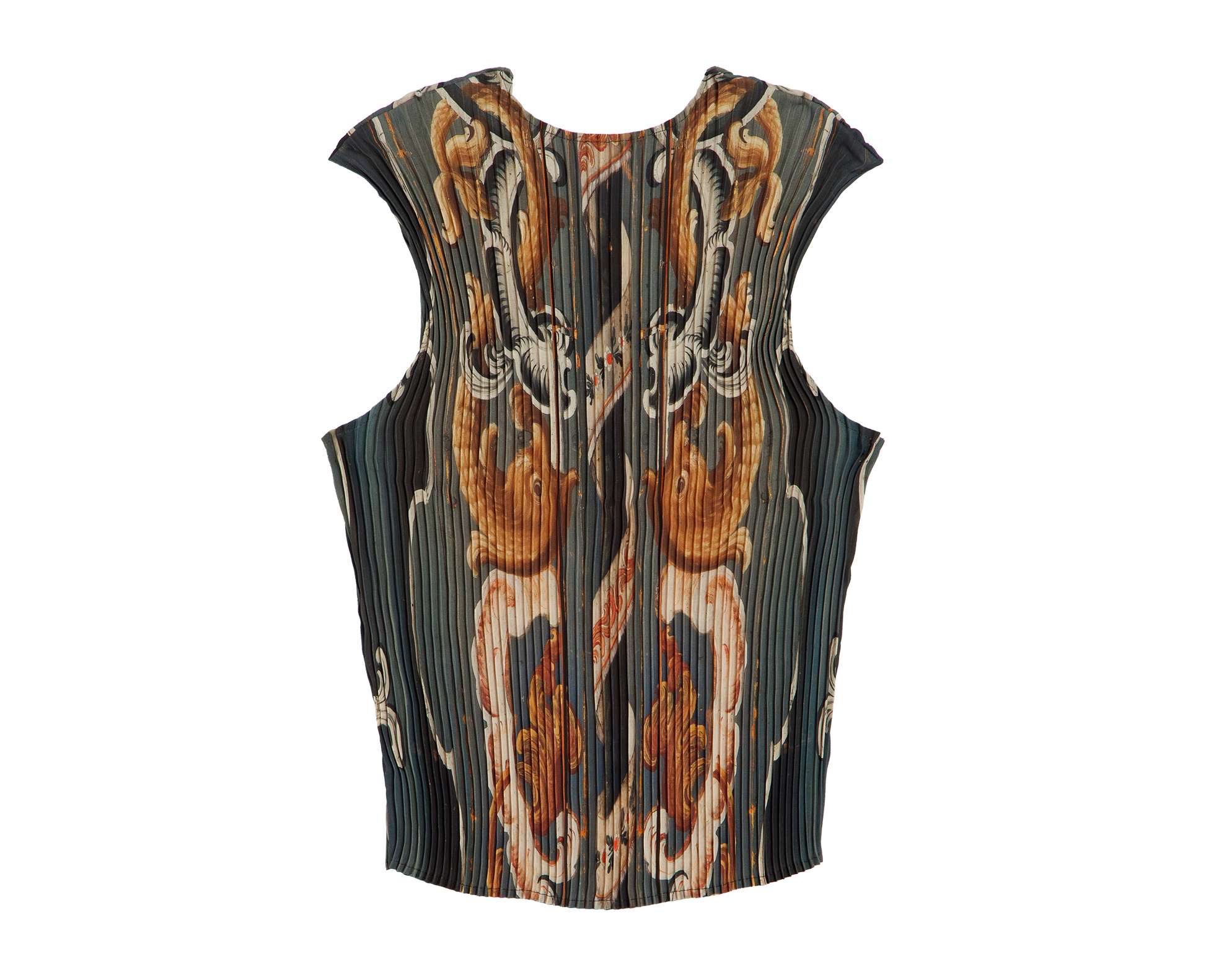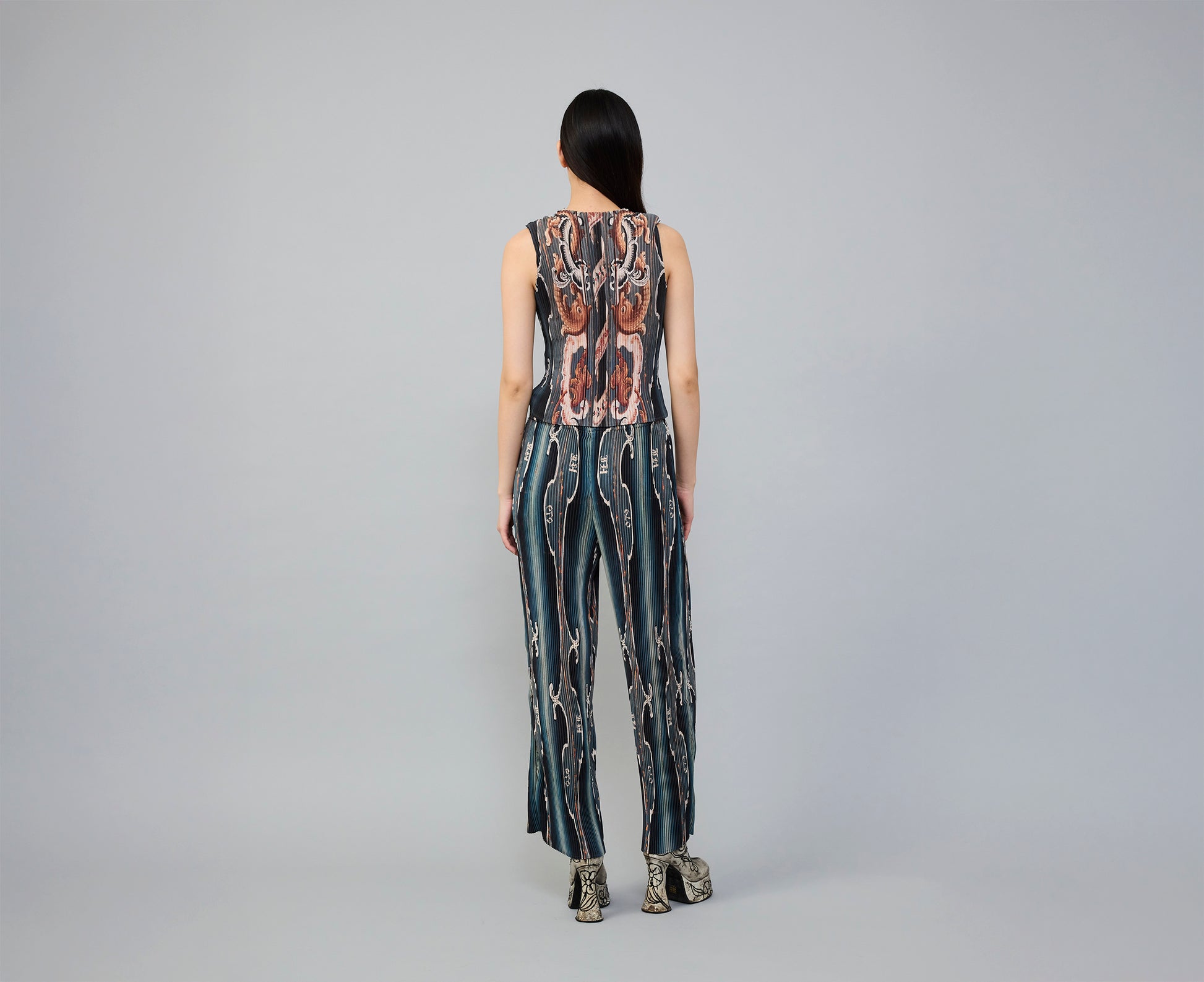 Ärmelloses Plissee-Top mit Allover Print und und gerader Passform.