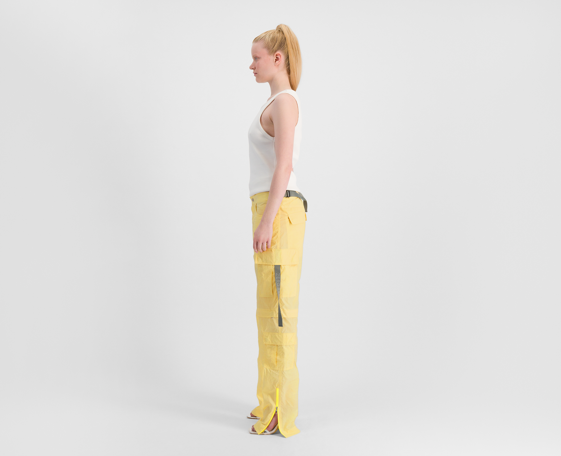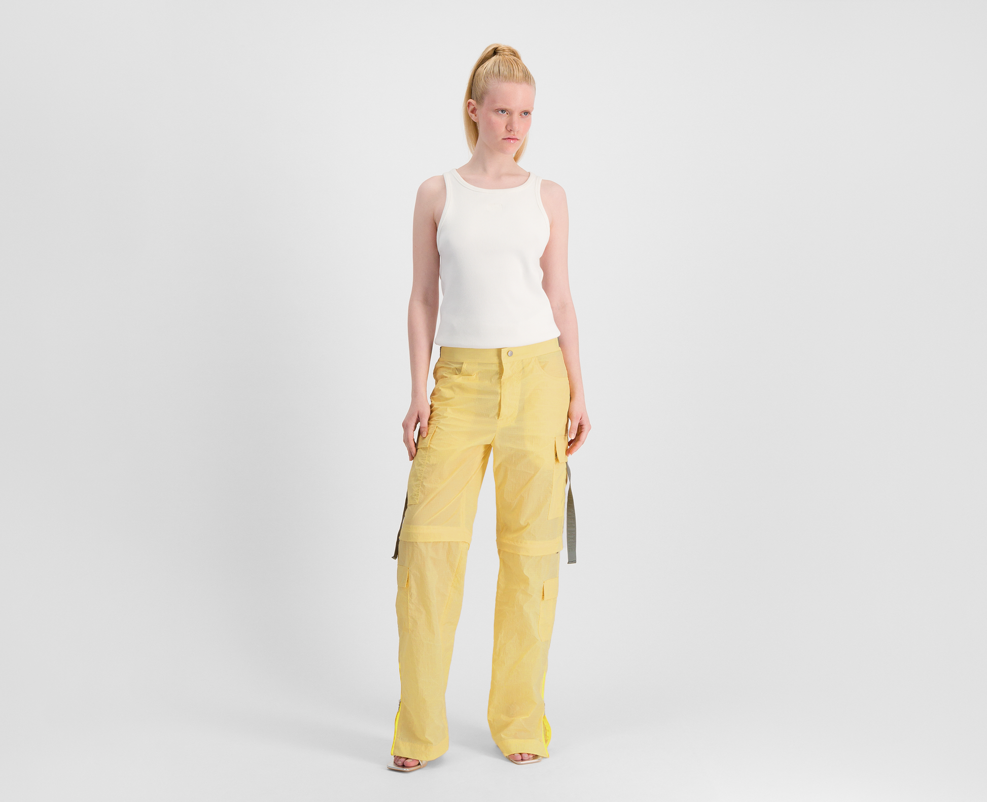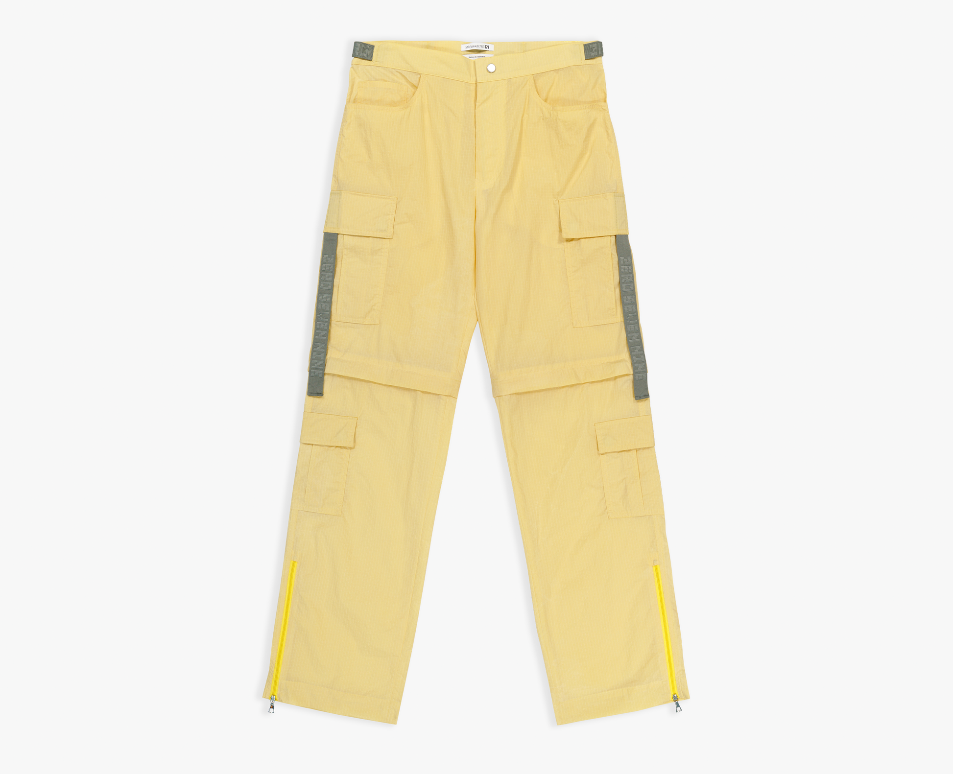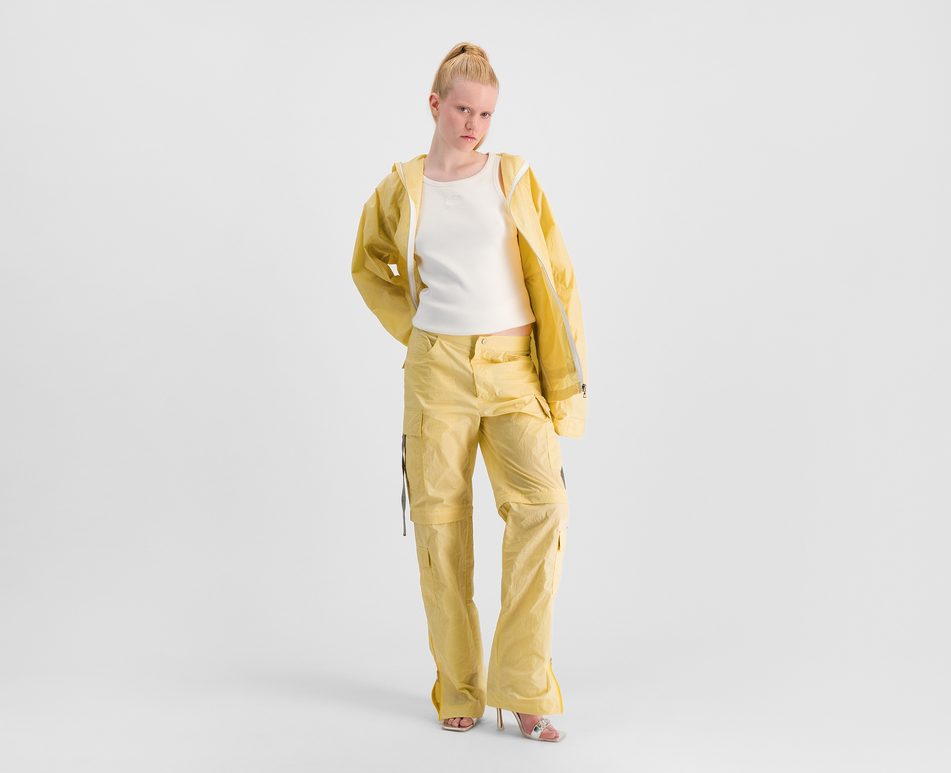 Cargo pants with adjustable waist, wide leg and zips at the knees for a shorts option. Made in Switzerland.