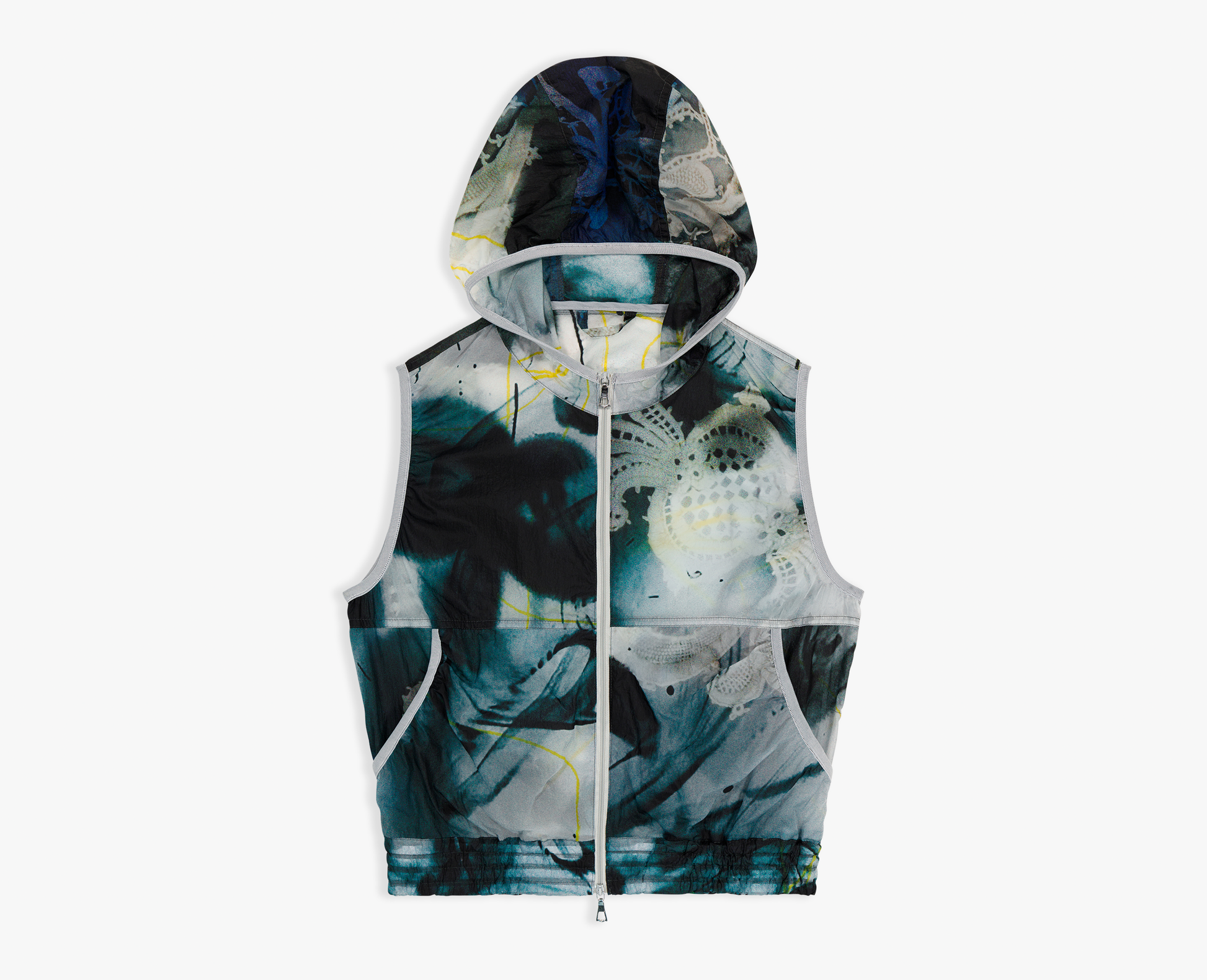 Lightweight nylon cargo vest, slightly cropped cut with elastic waistband. Made in Switzerland.