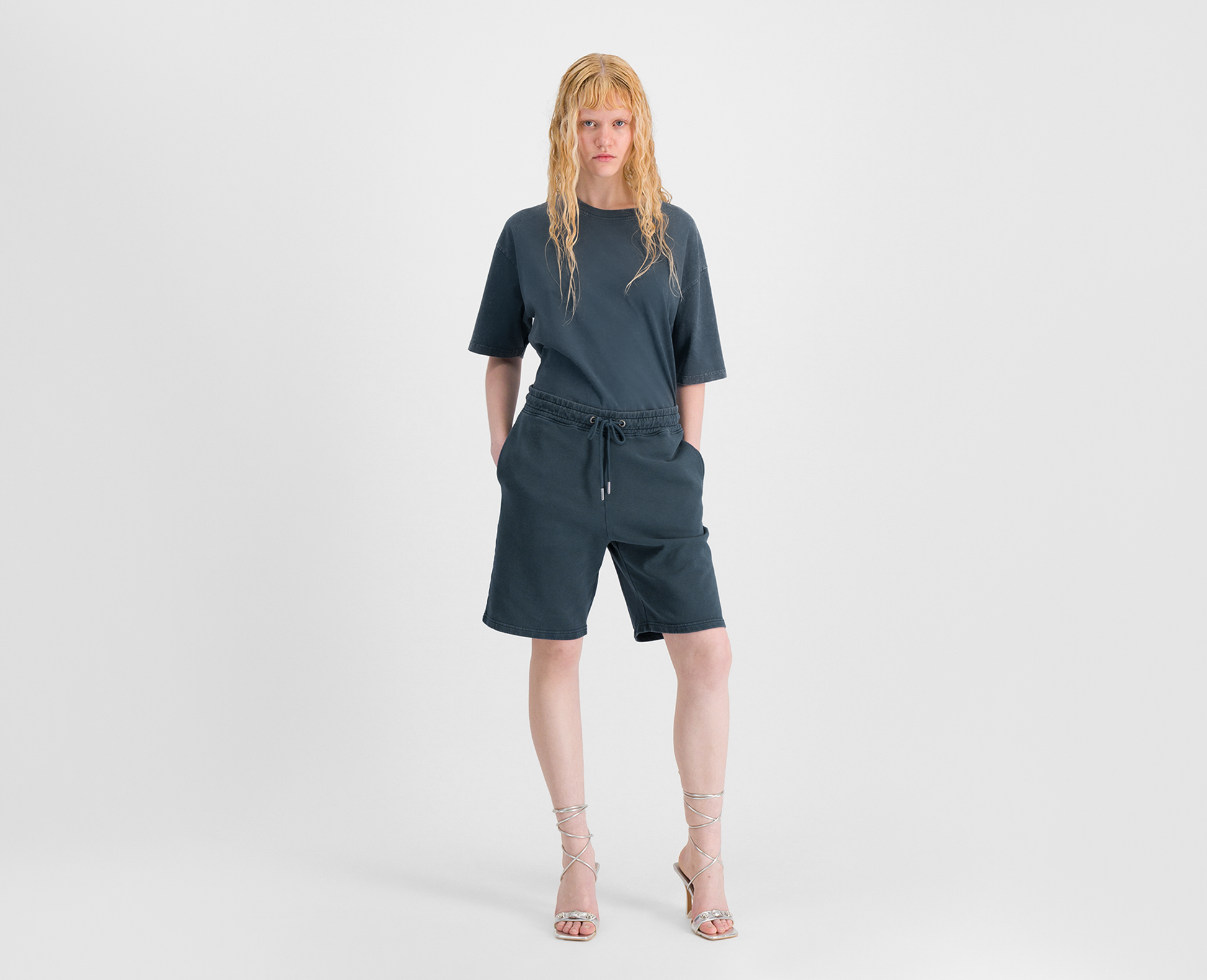 Sweat shorts with elastic waistband and wide legs made from 100% organic cotton.
