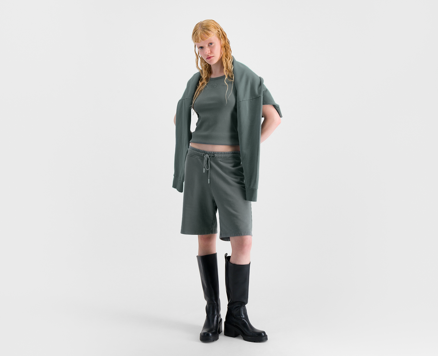Sweat shorts with elastic waistband and wide legs made from 100% organic cotton.
