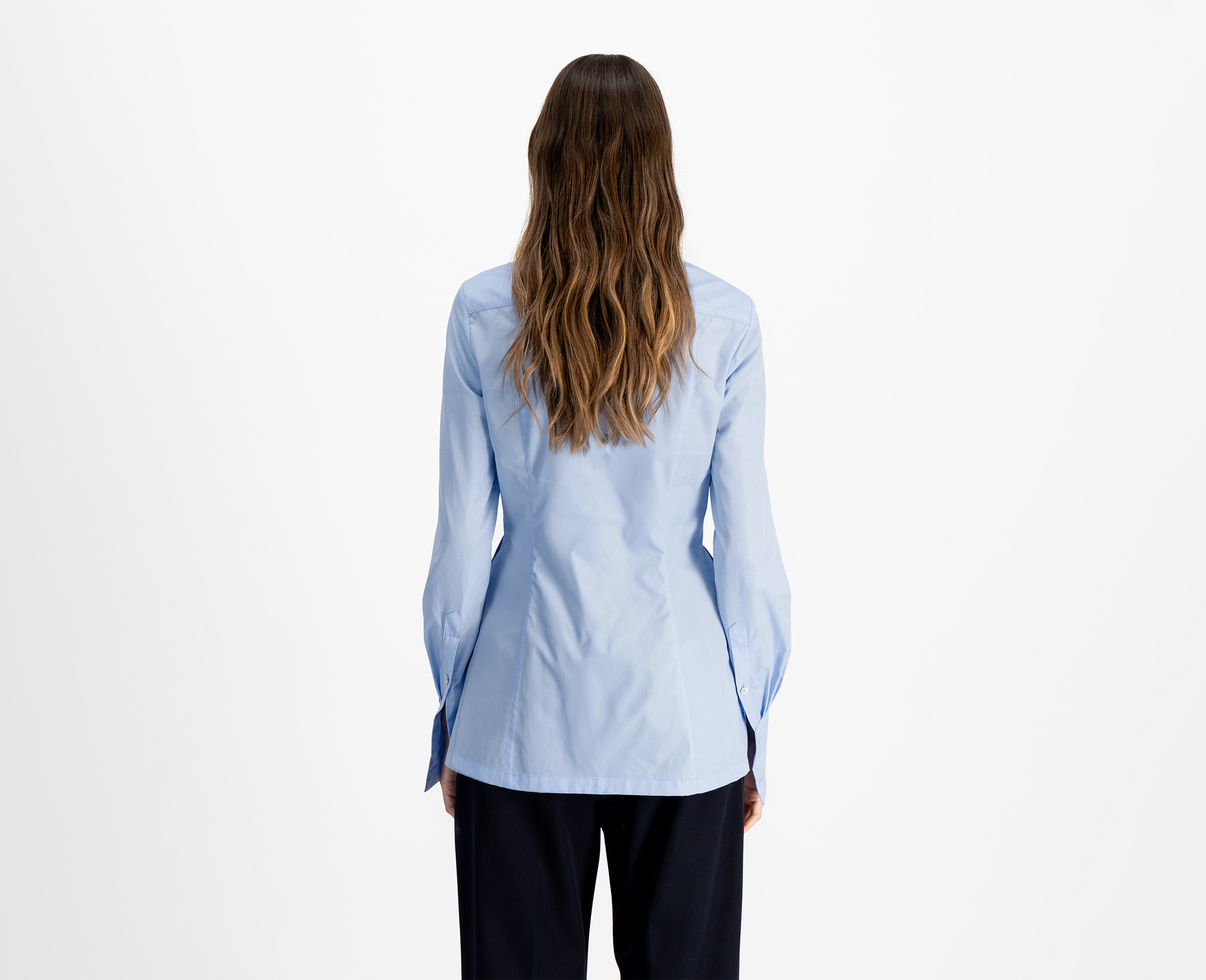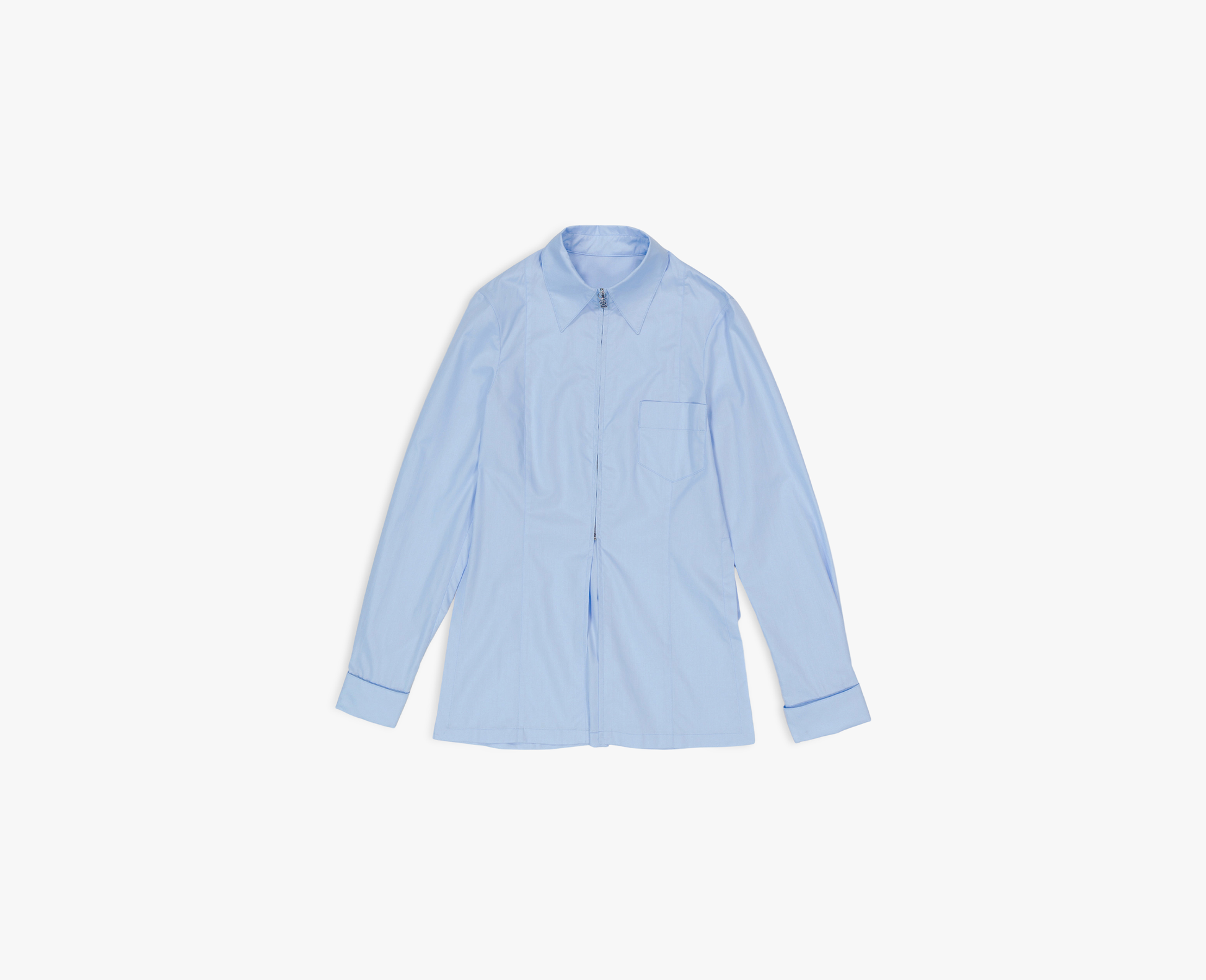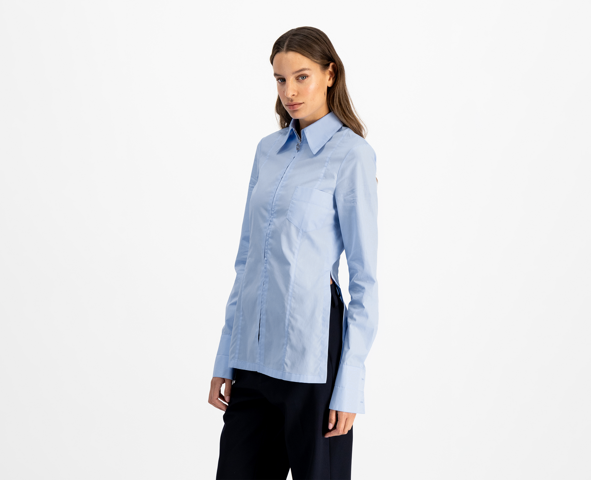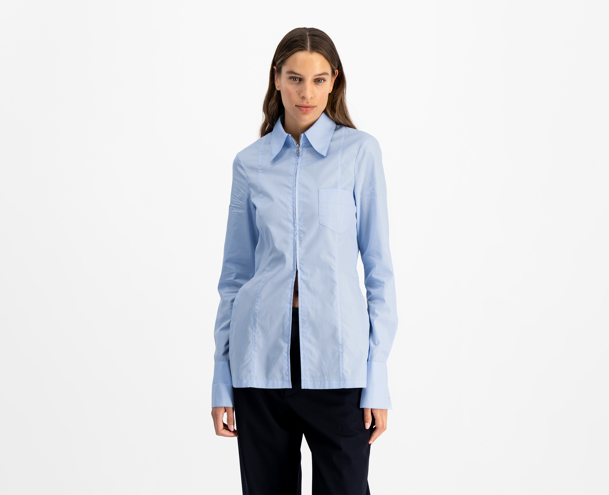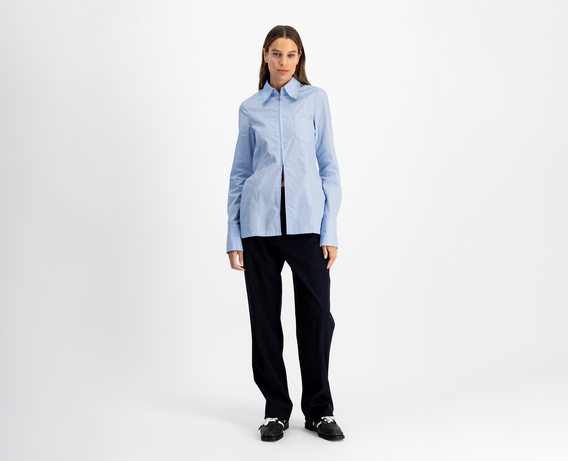 Blouse made of 100% cotton with a half-high riri zipper and stand-up collar. Made in Switzerland.