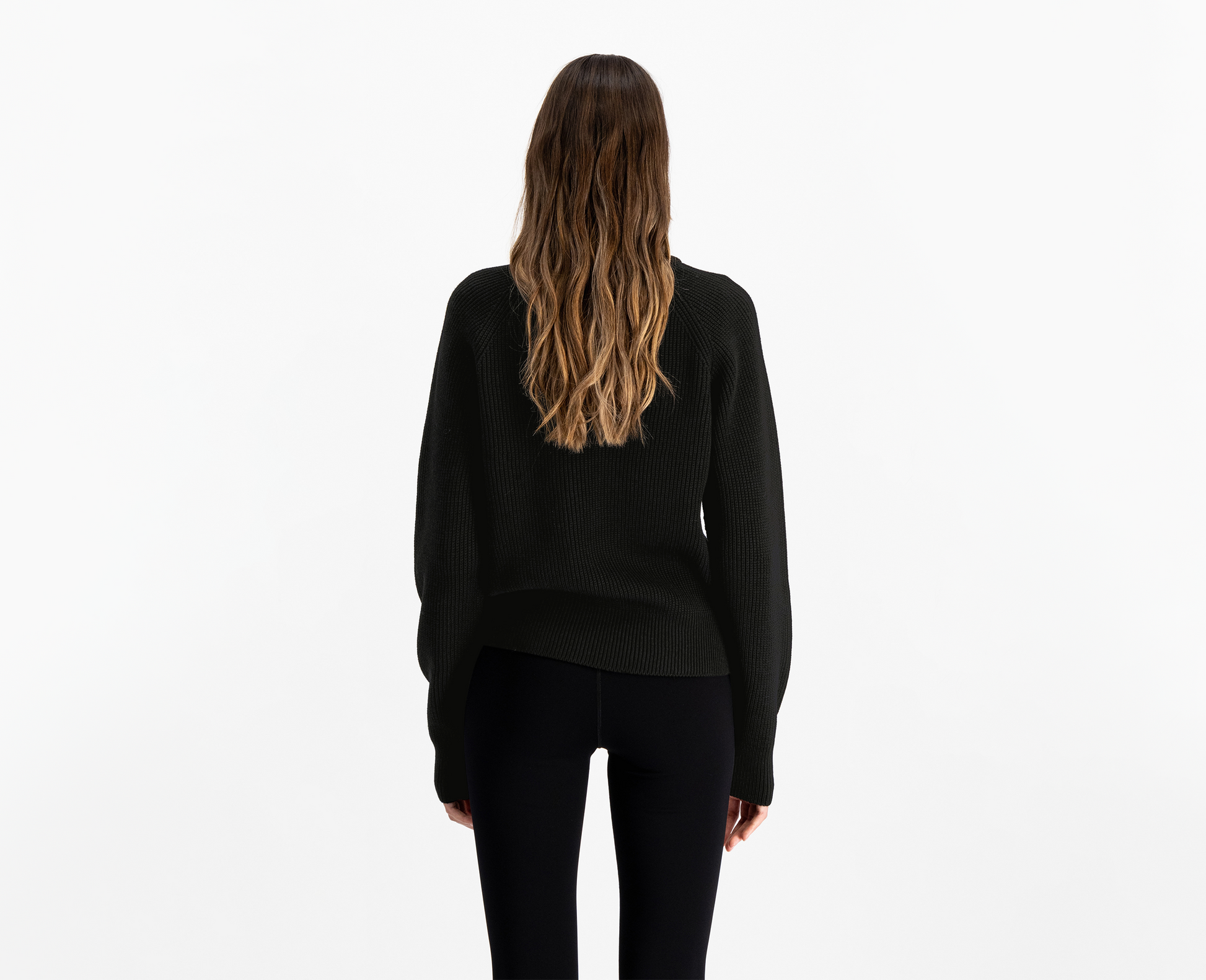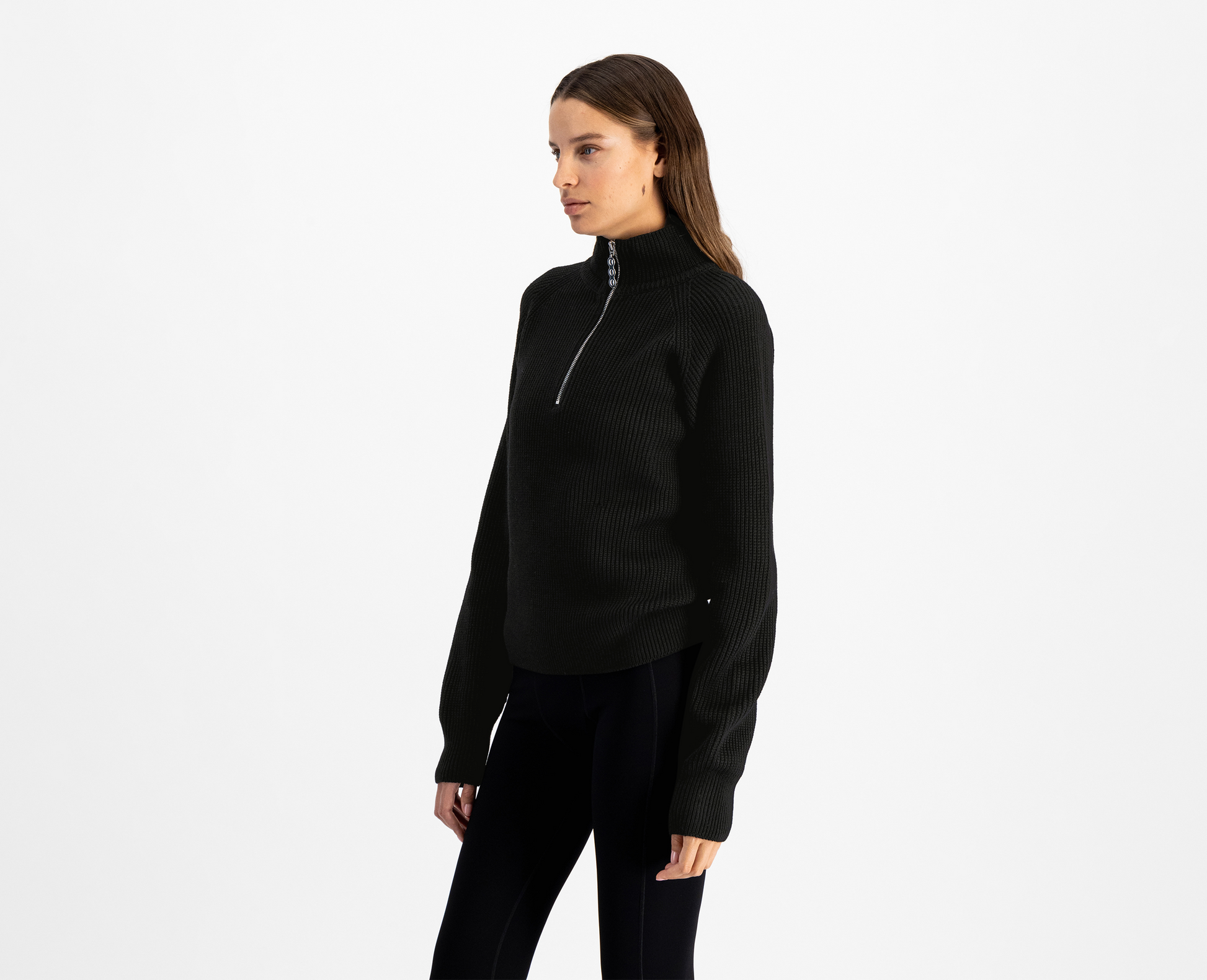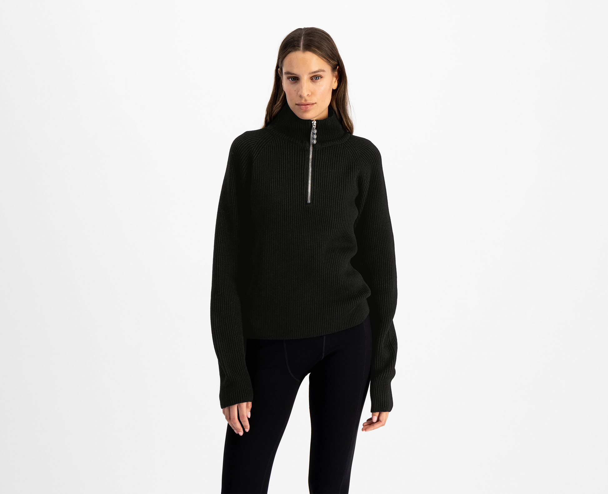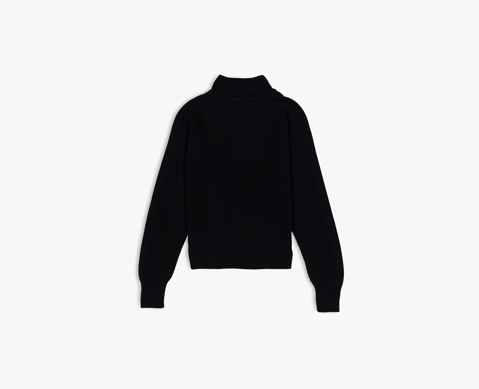 Jumper made of pure merino wool with a high collar and riri zipper. Made in Switzerland.