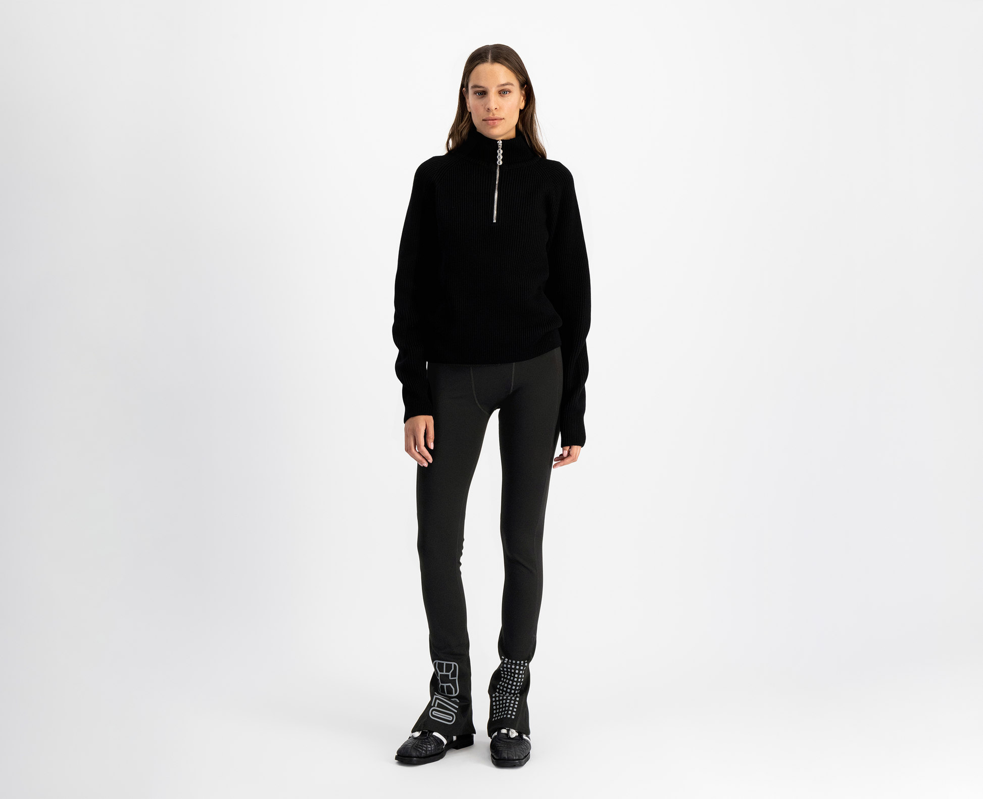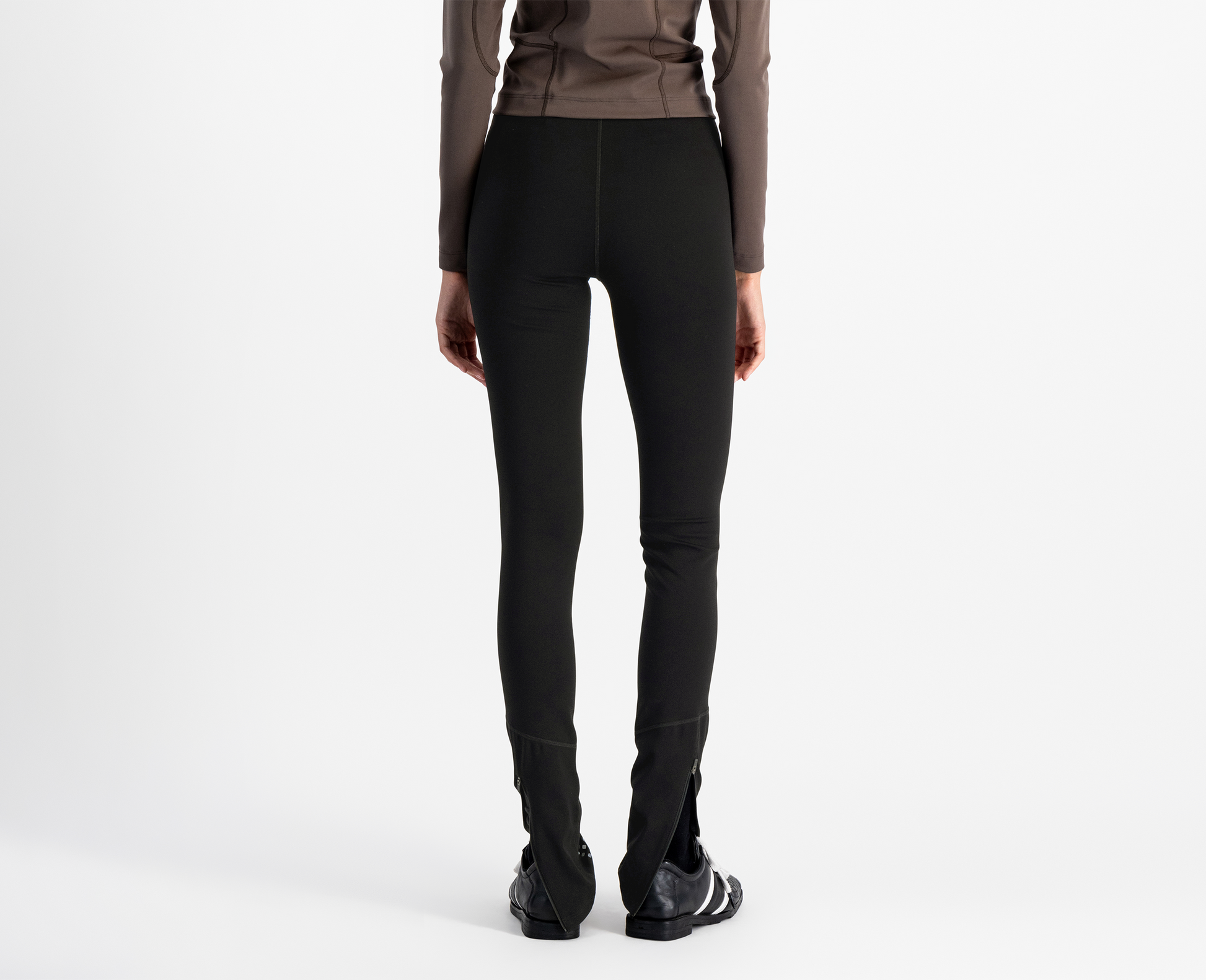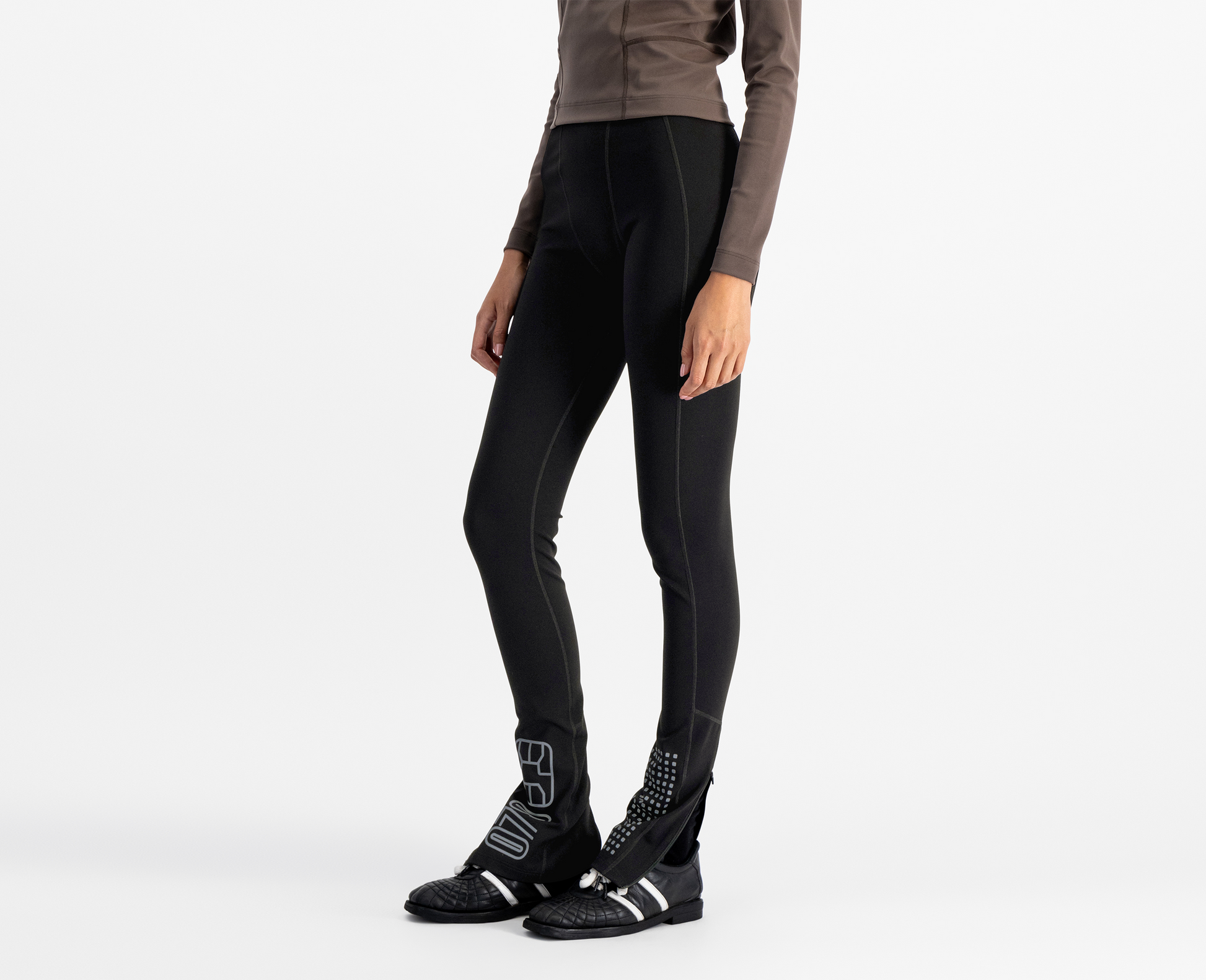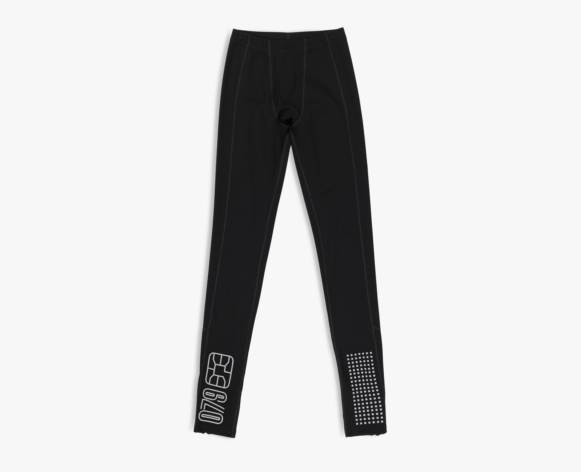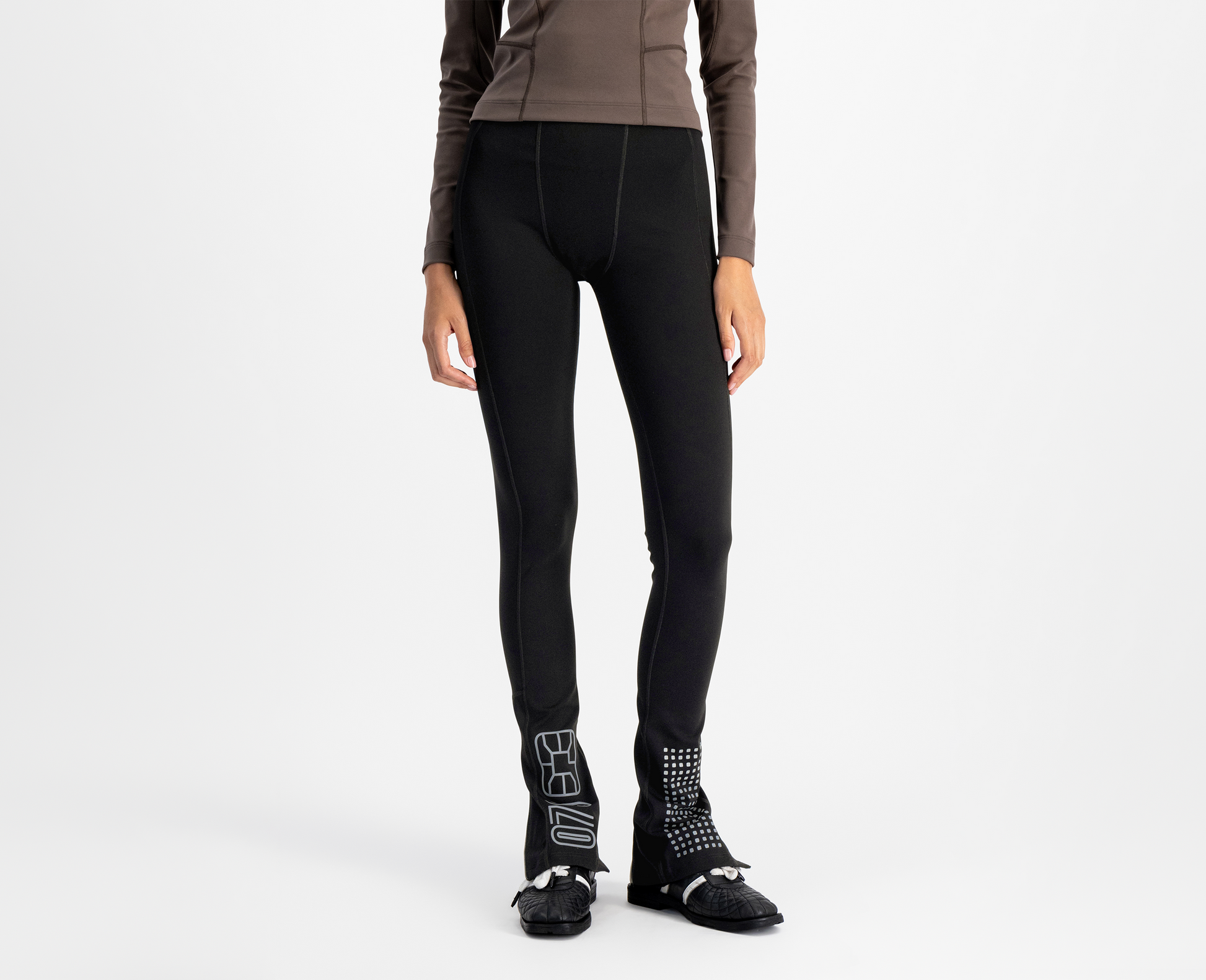 Leggings with reflective prints and a zipper at the hem. Tight, snug fit.