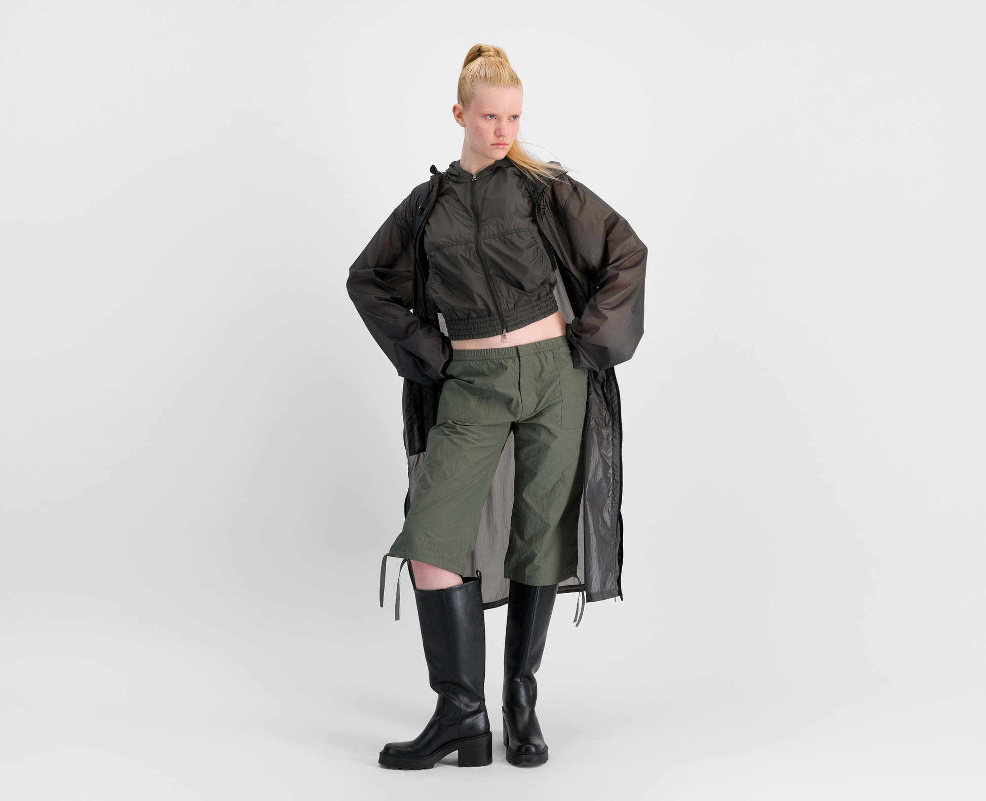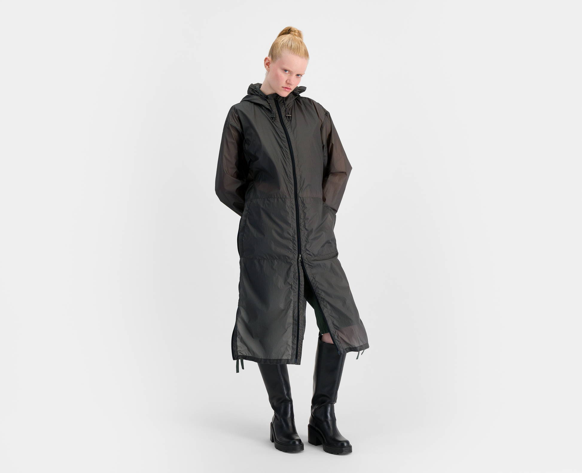 Lightweight parka with a loose fit and two-way zipper. Made in Switzerland.