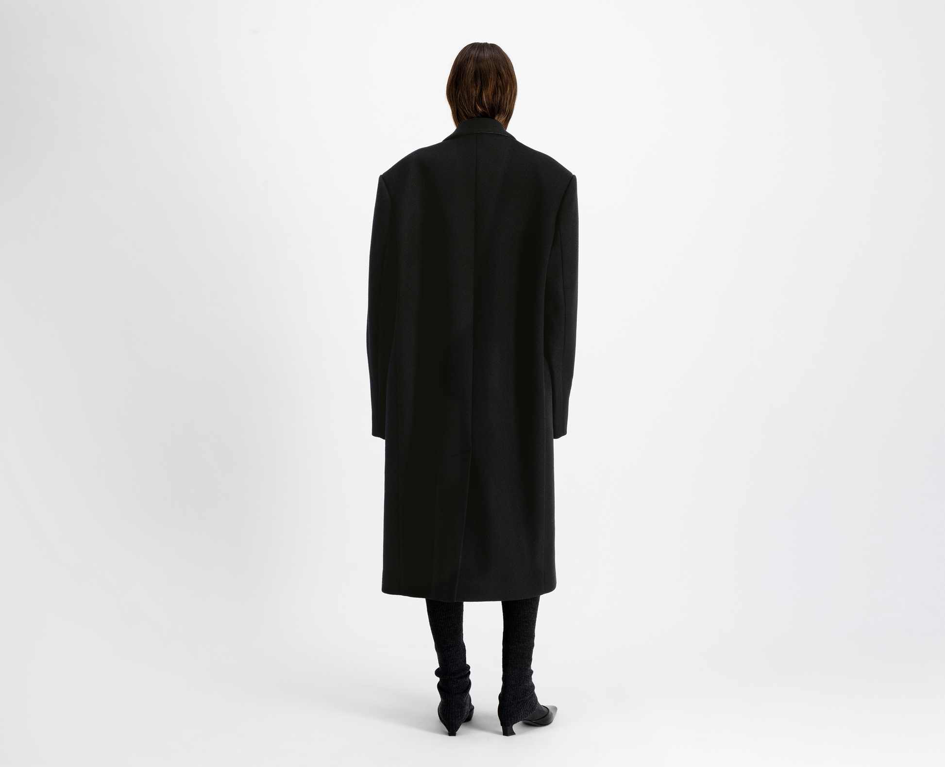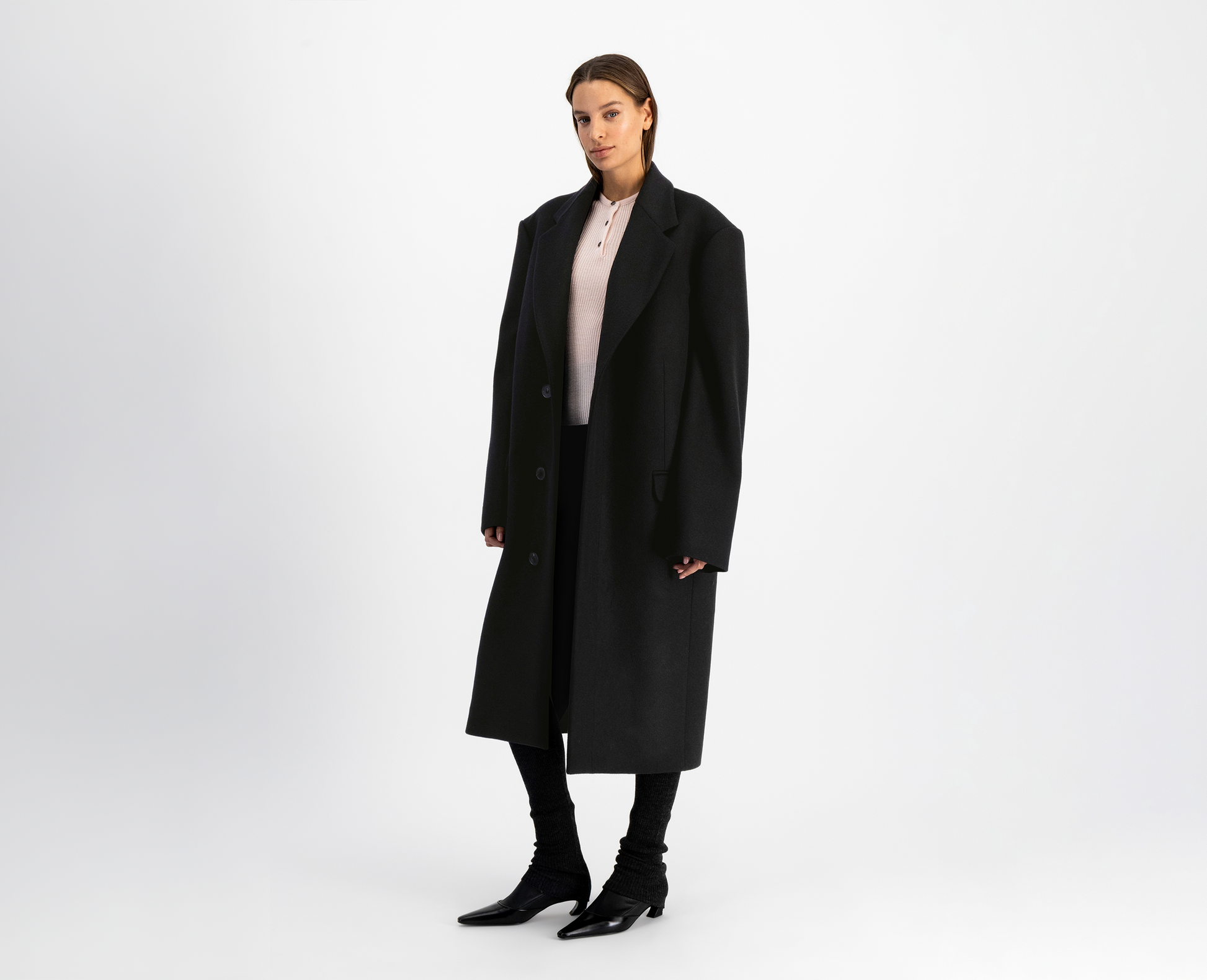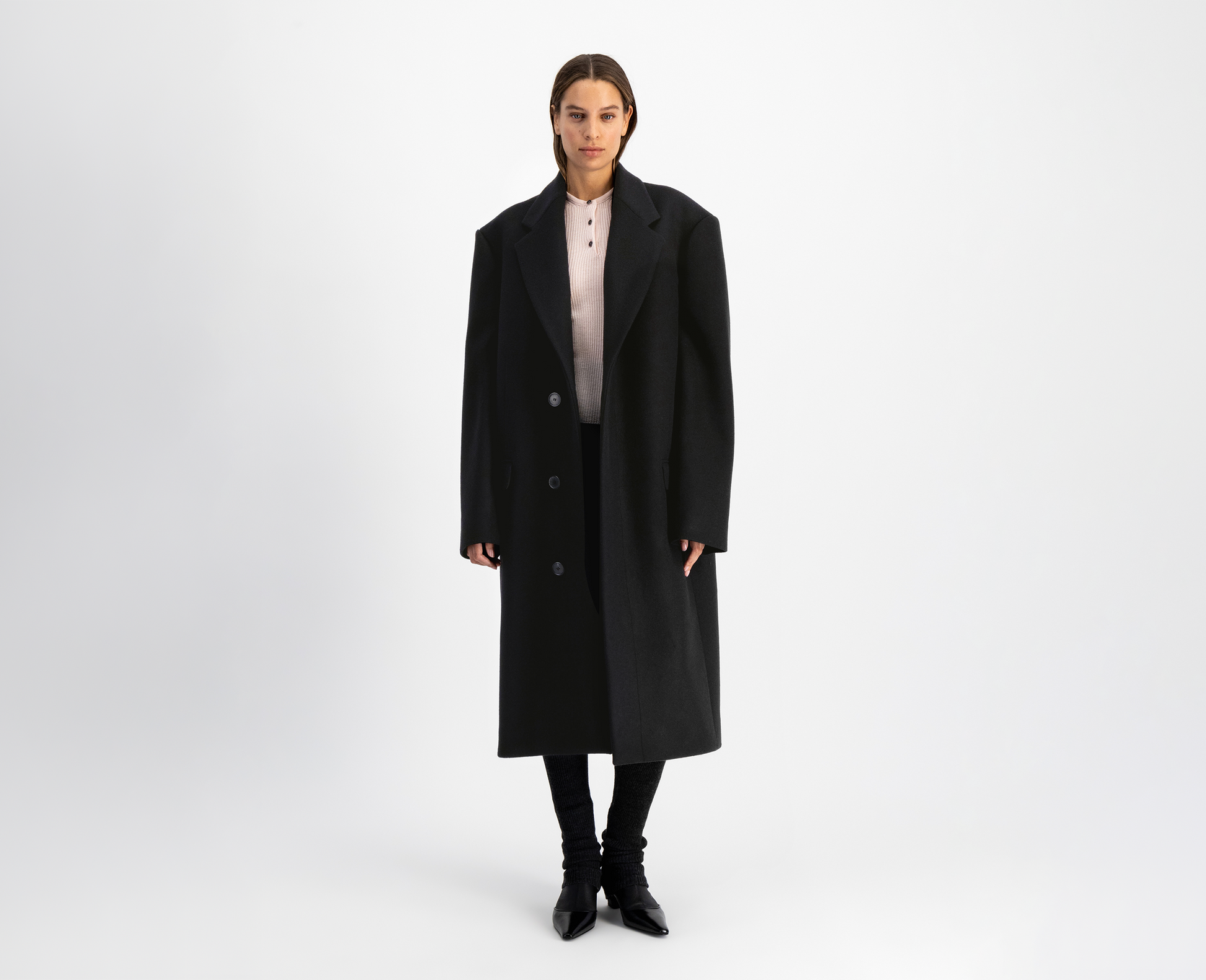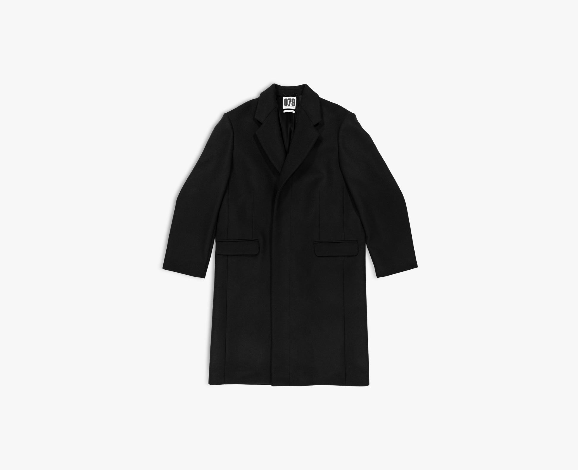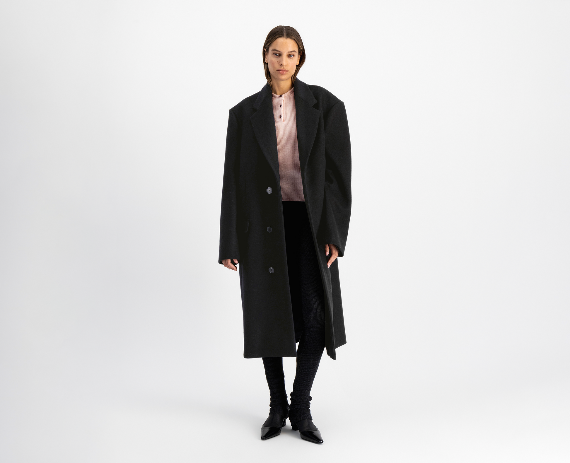 Wool coat made from virgin wool and cashmere, straight unisex cut. Made in Switzerland.