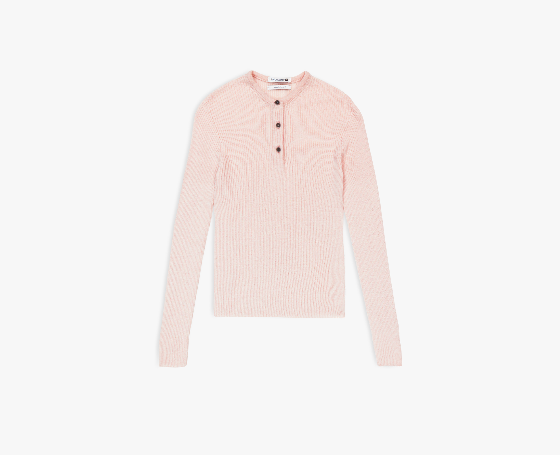 Henley top made of merino wool and silk with a crew neck and button placket. Made in Switzerland.