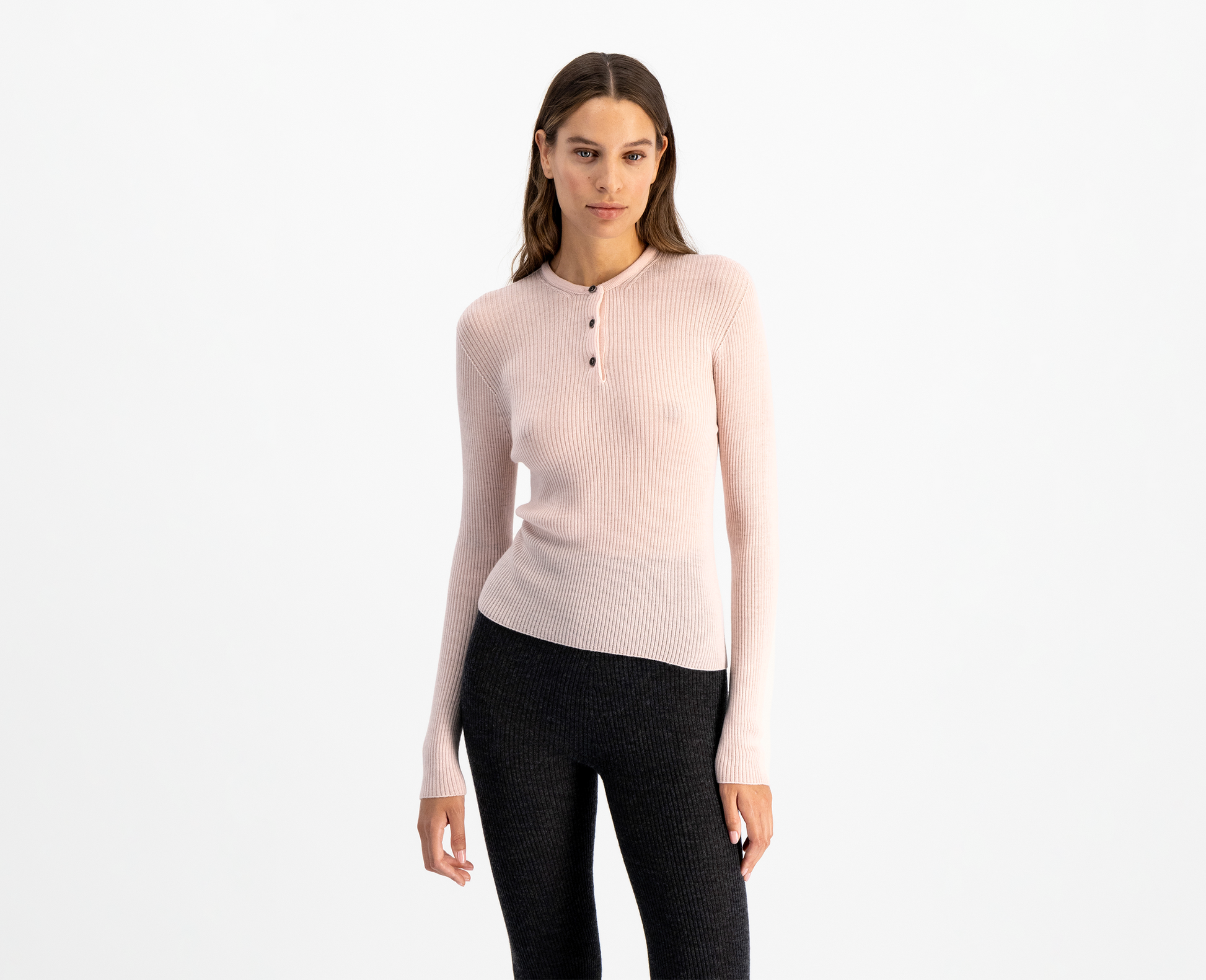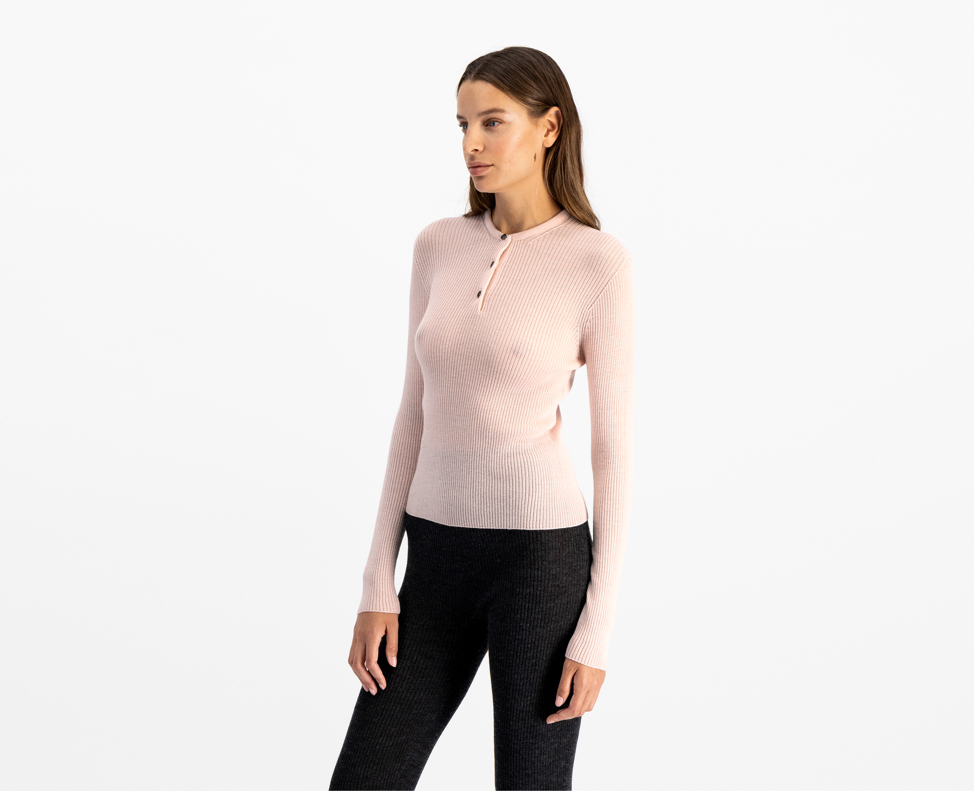 Women's merino/silk henley top, rose