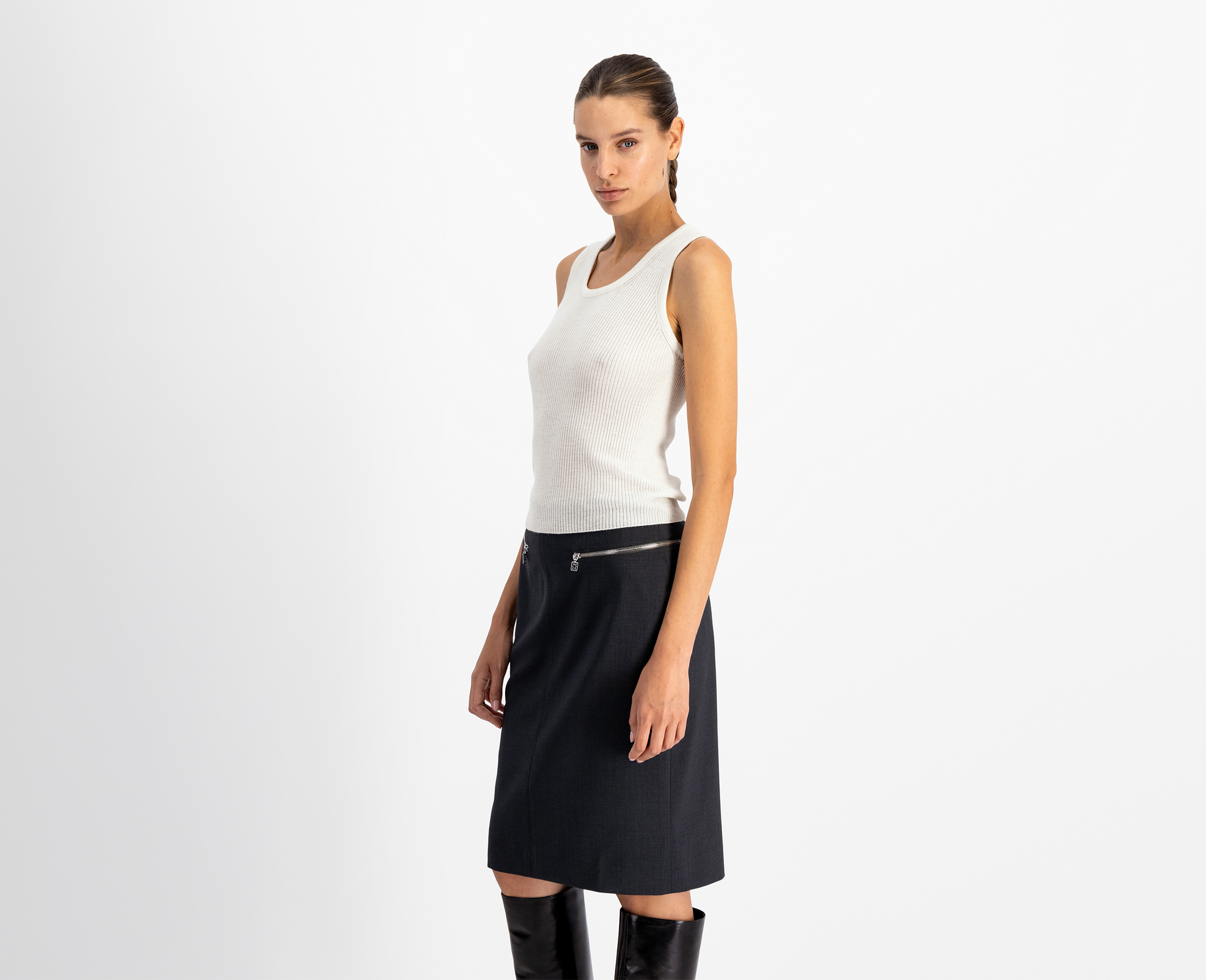 Top made of merino wool and silk with a crew neck. Made in Switzerland.