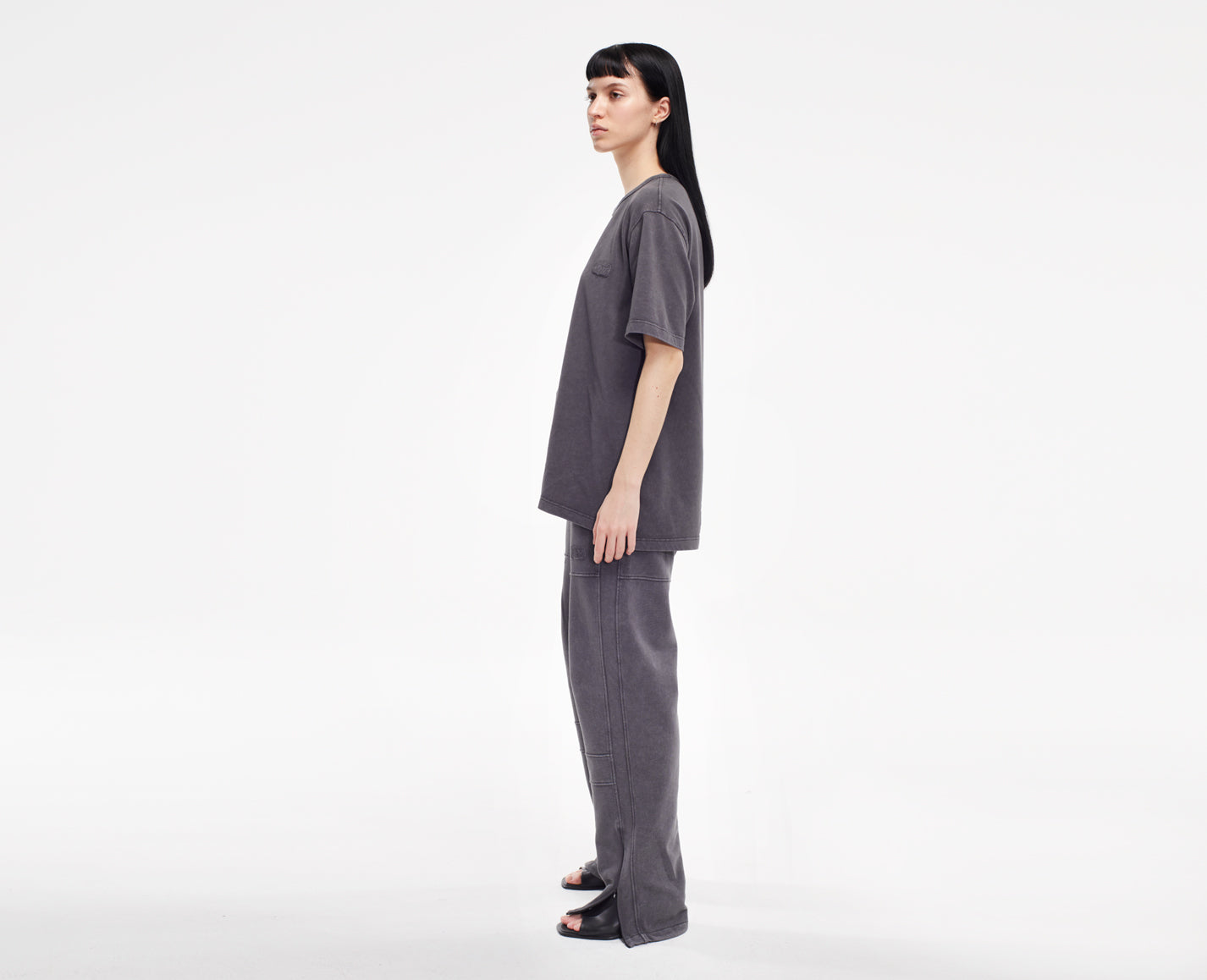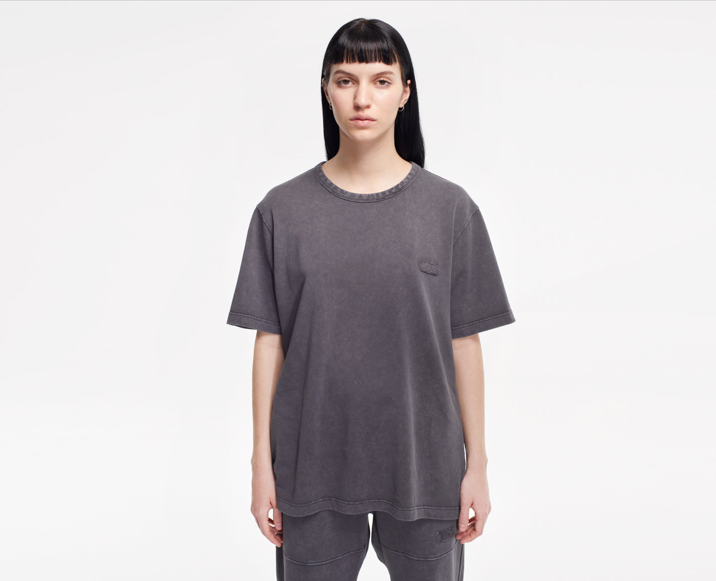 Organic cotton crew neck T-shirt with chest logo. Single jersey in washed quality.