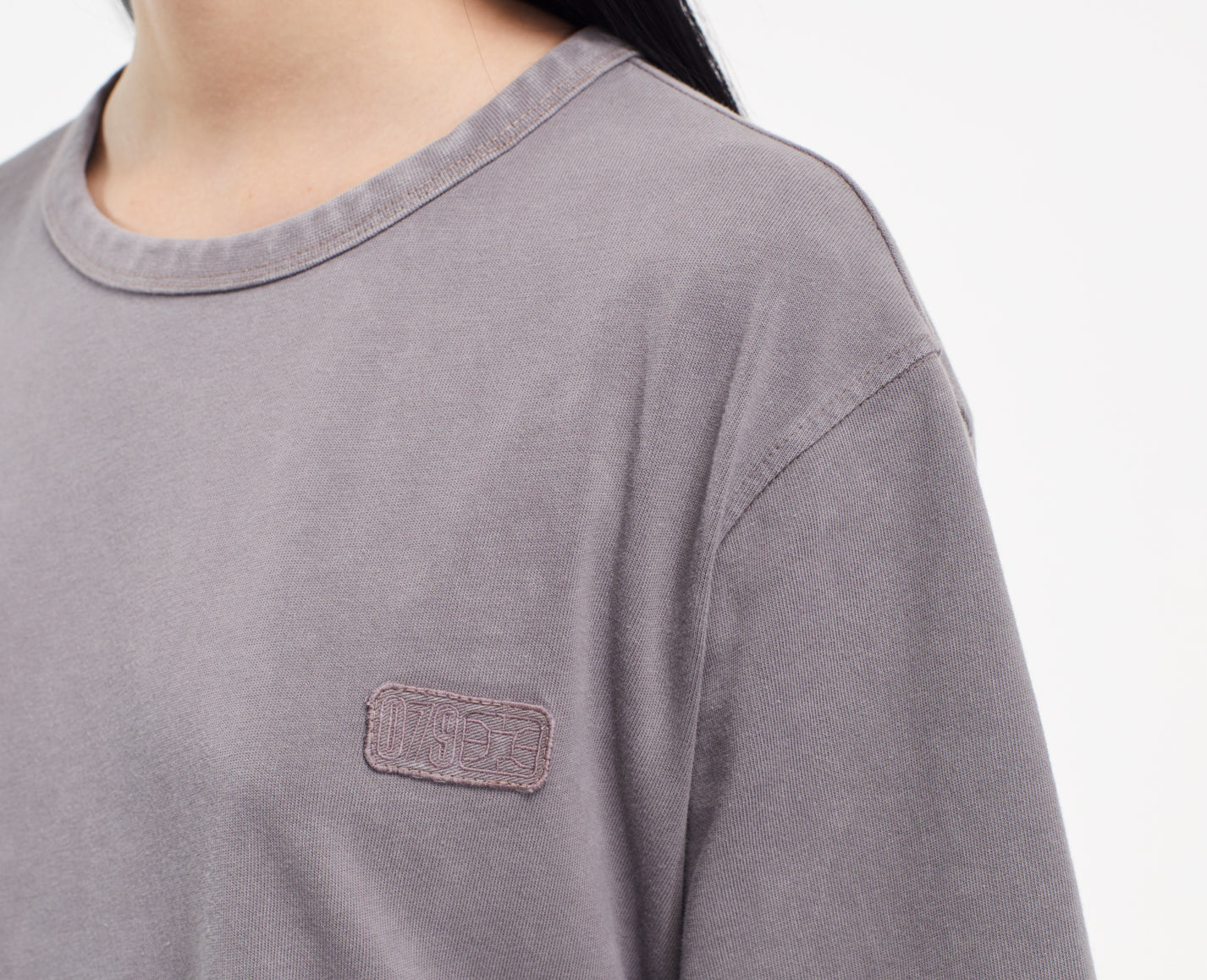 Organic cotton crew neck T-shirt with chest logo. Single jersey in washed quality.