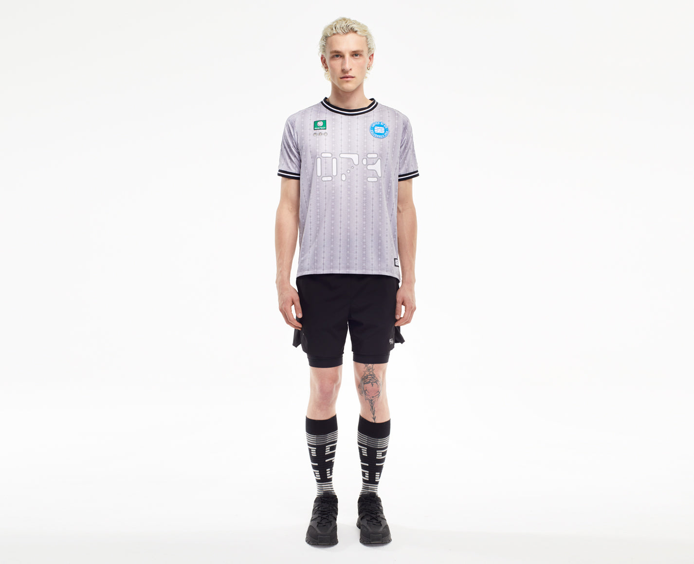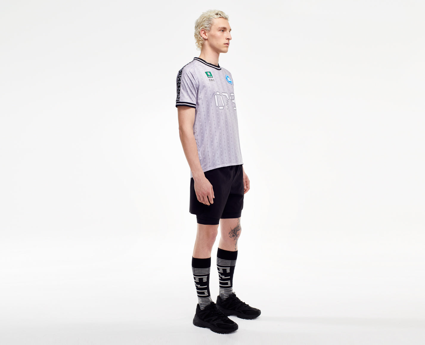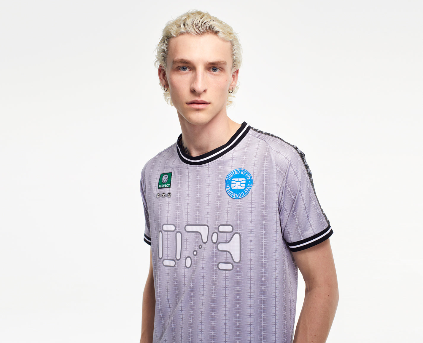 Maillot de foot en jersey polyester élastique avec Allover Print, logo sur la poitrine et différents flocages. Coupe normale unisexe avec col rond, manches raglan et bordures rayées aux manches.
