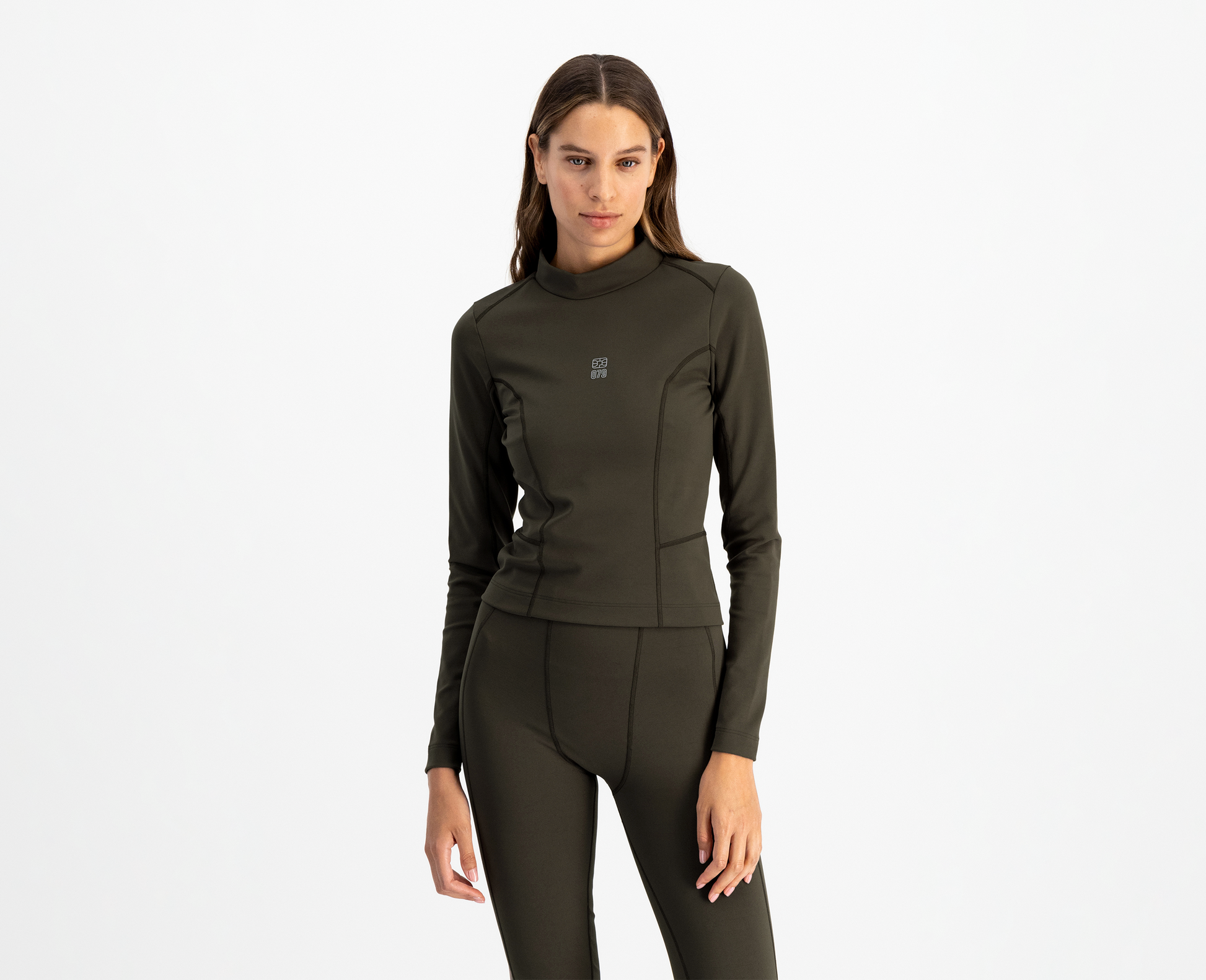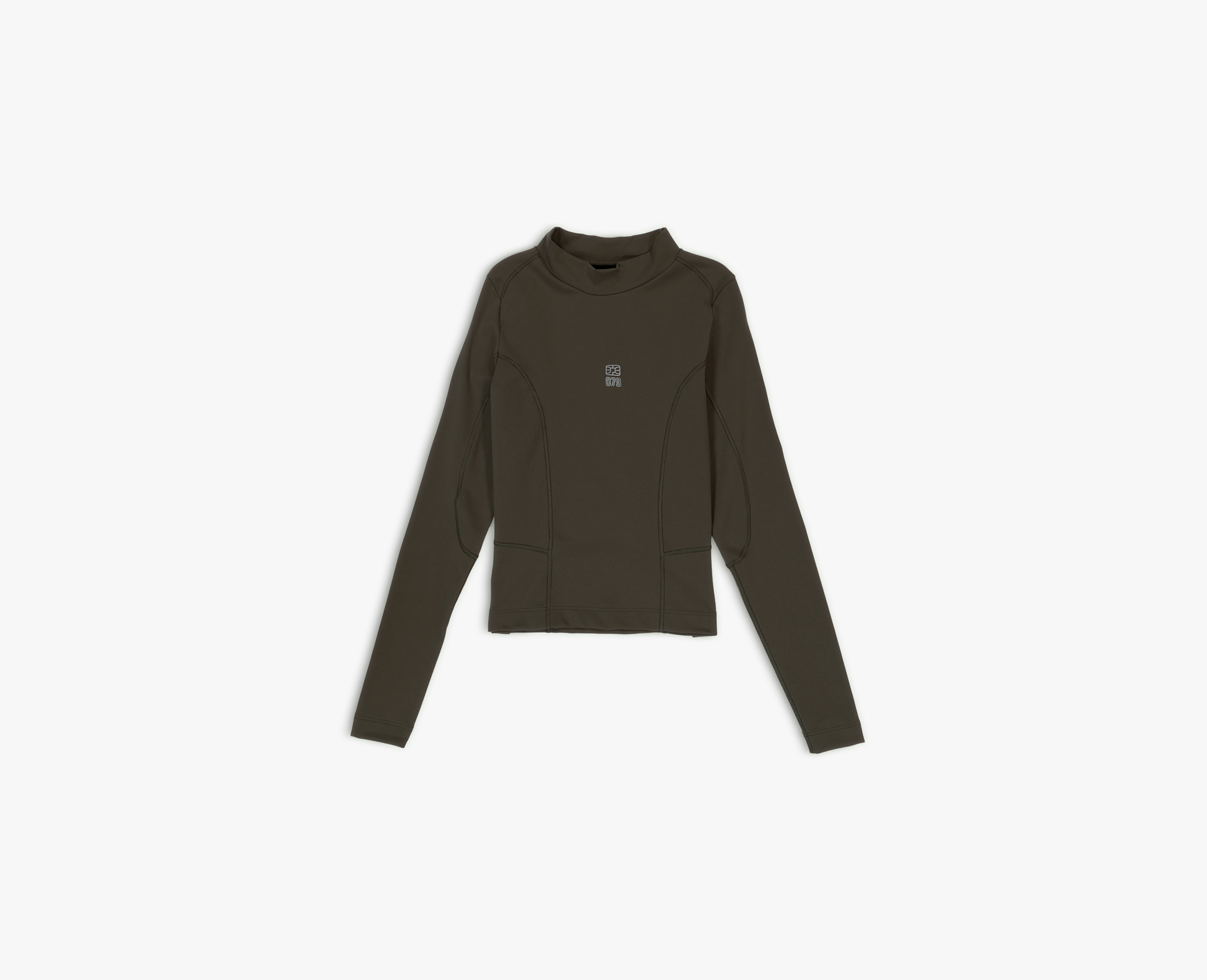 Long Sleeve Top elastisch mit Kragen, Nähten und Verarbeitungsdetails.