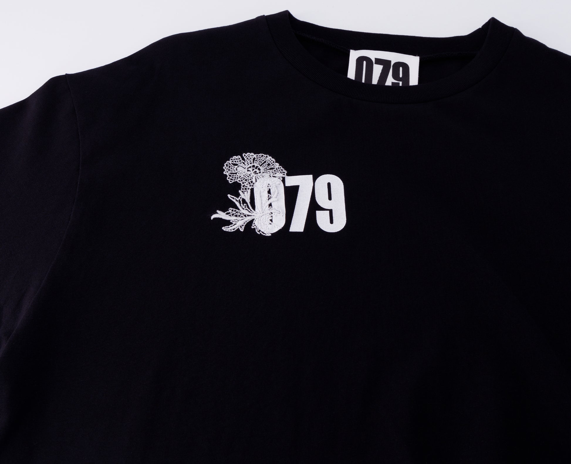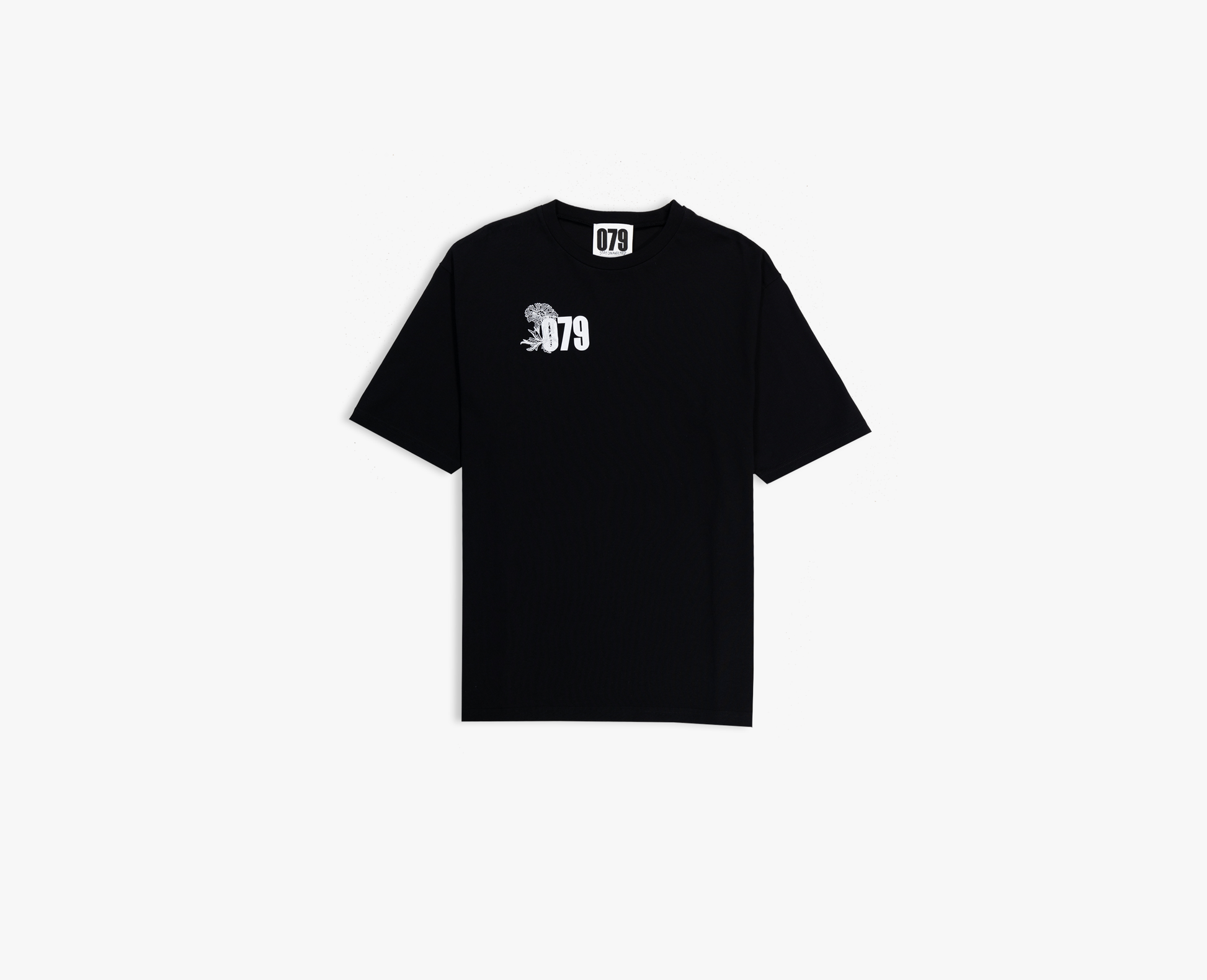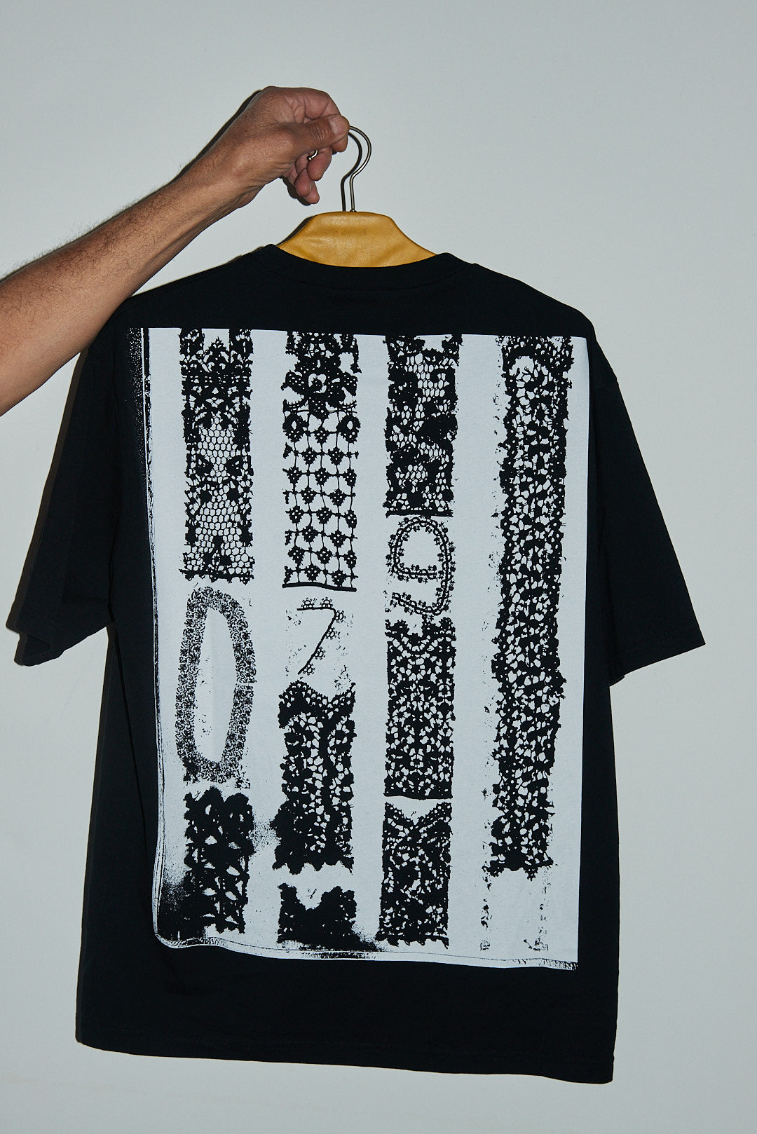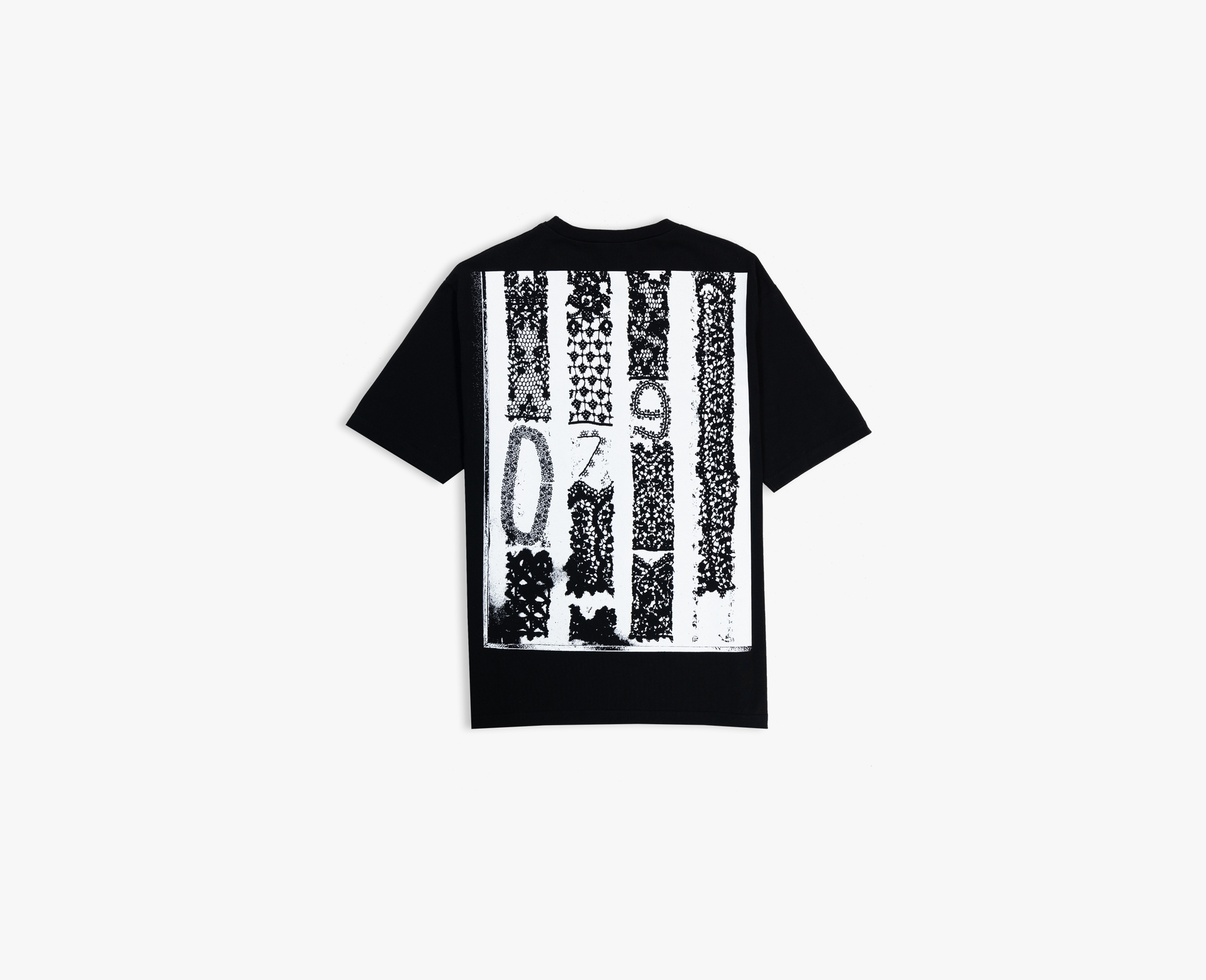 Damen T-Shirt bedruckt mit Stickerei-Detail, schwarz