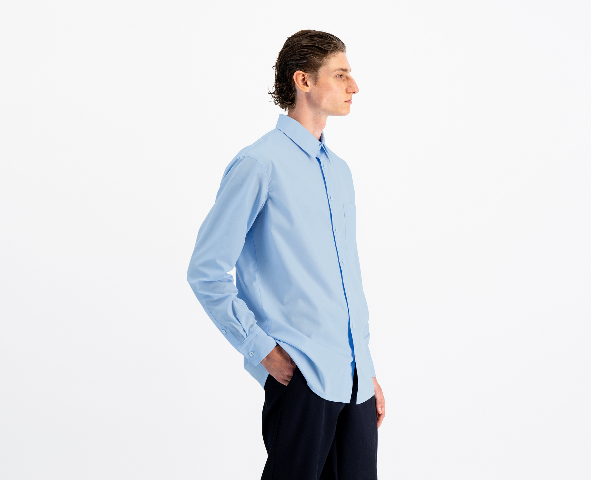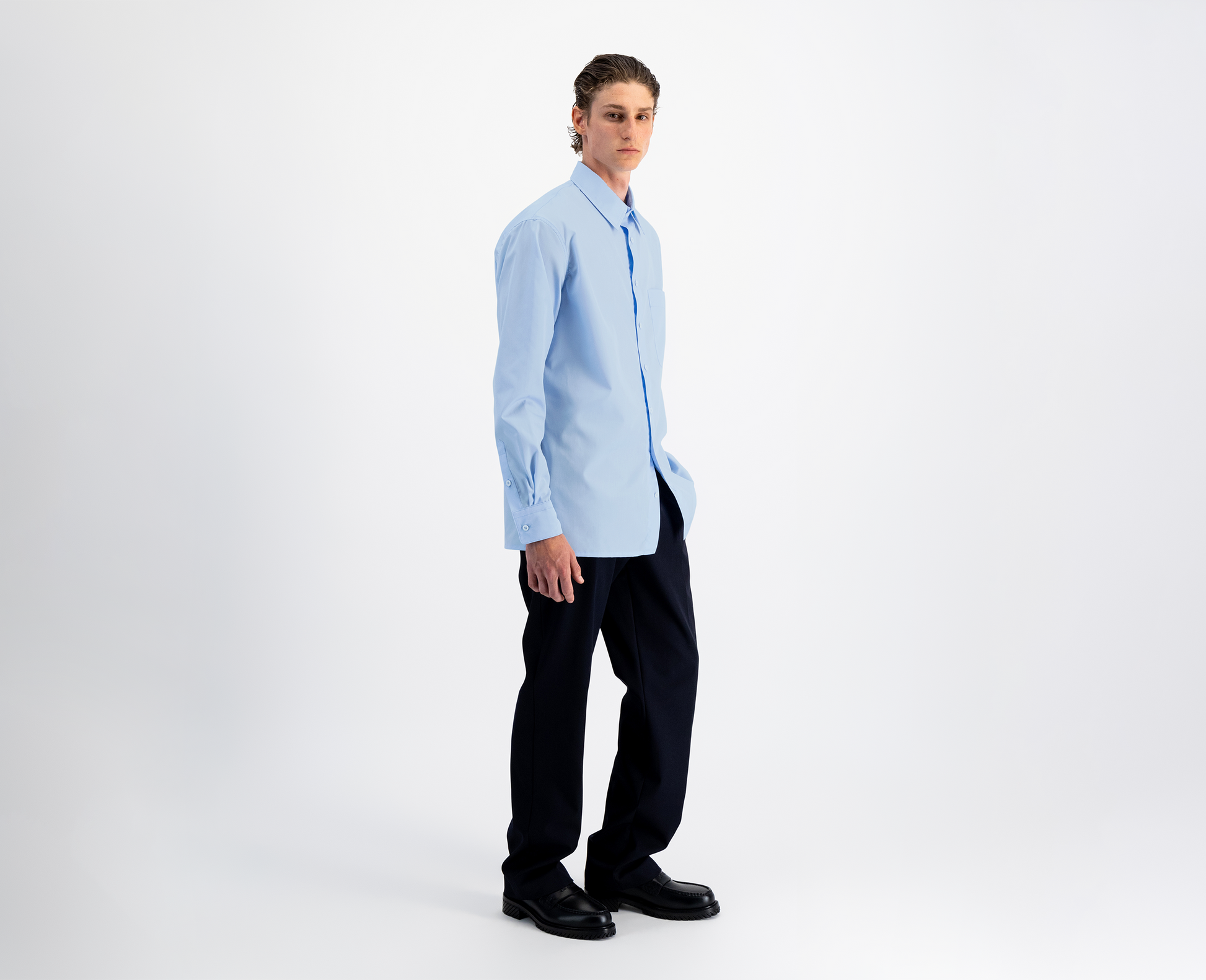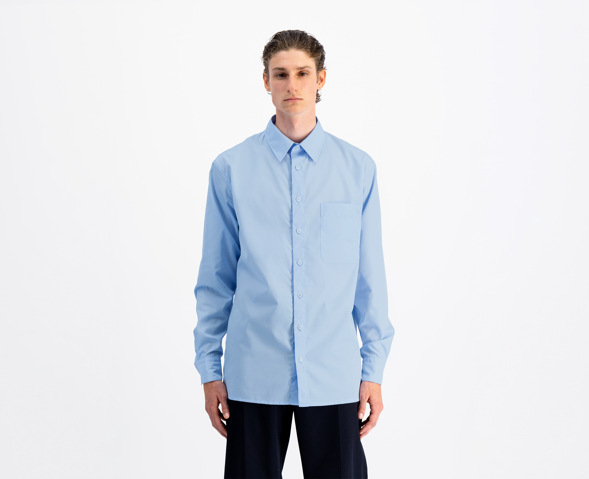 Hemd mit Brusttasche und Knopfleiste aus 100% Baumwolle. Hergestellt in der Schweiz.