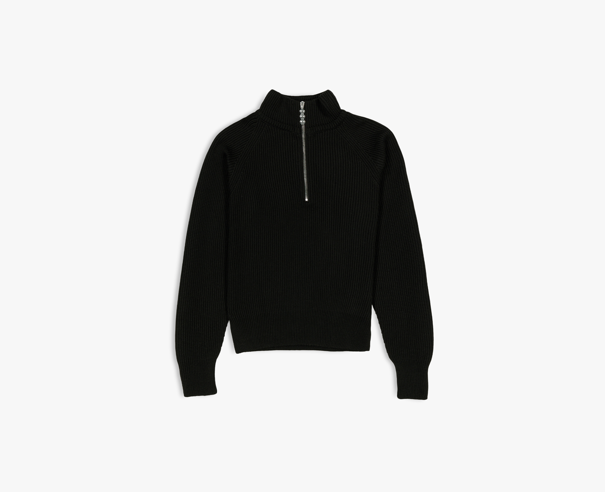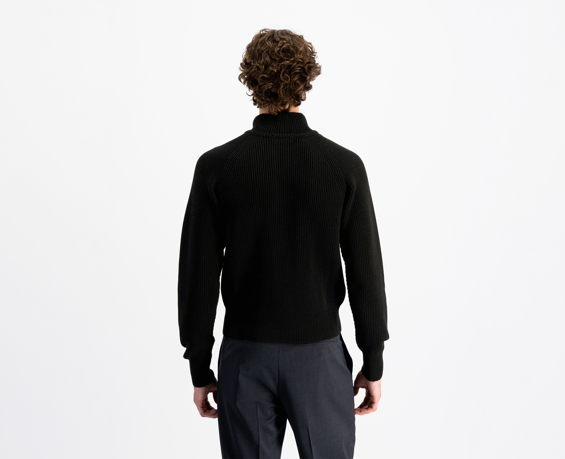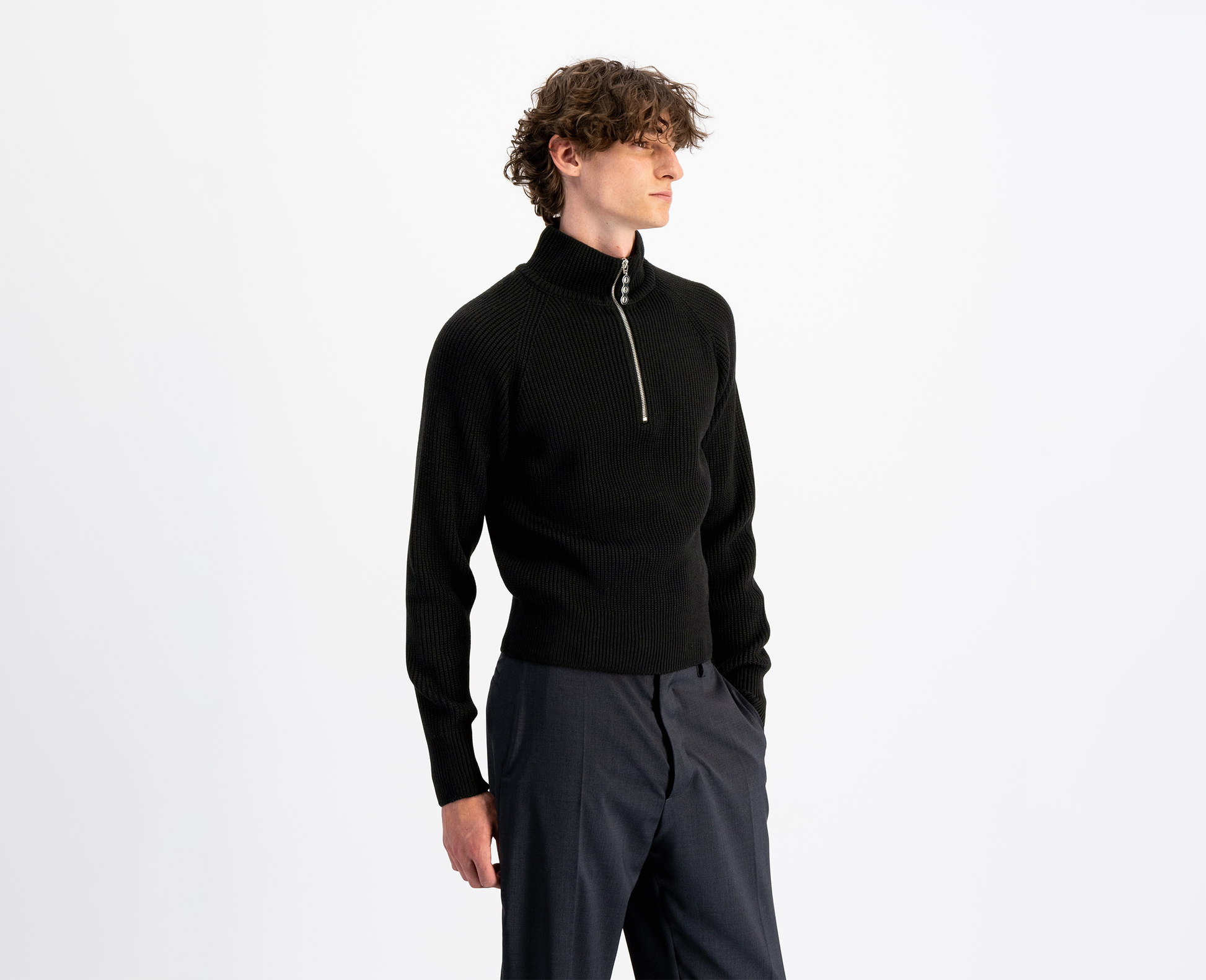 Pullover aus reiner Merinowolle mit hohem Kragen und riri-Reissverschluss. Hergestellt in der Schweiz.