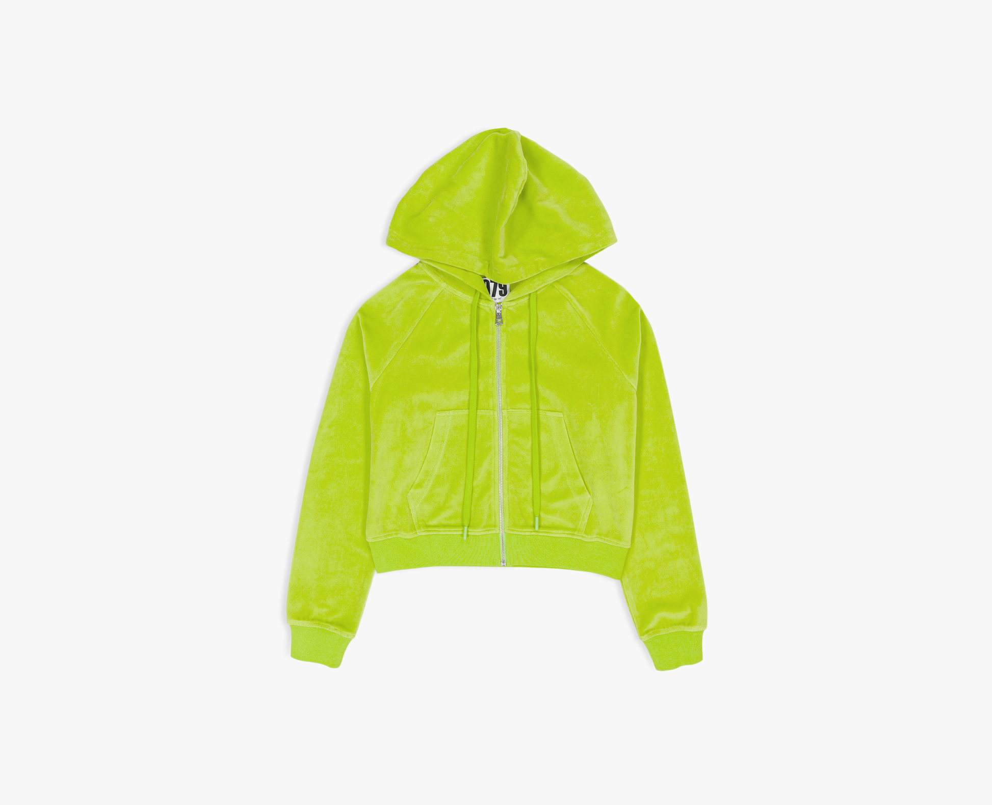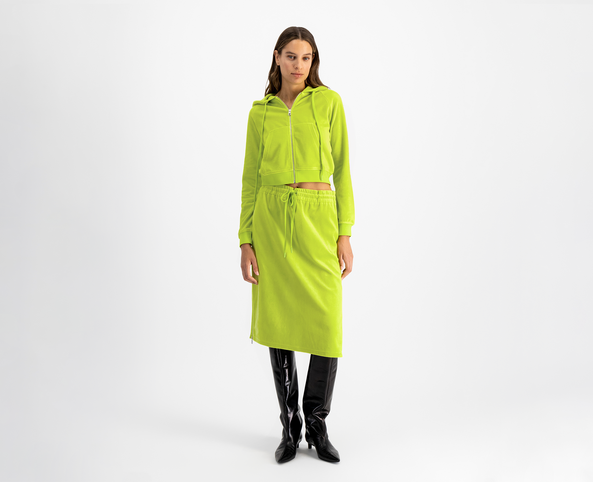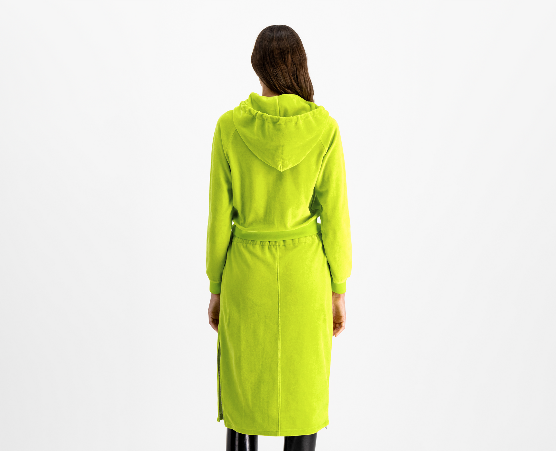Kaputzenpullover aus Bio-Baumwollvelour mit Reissverschluss und Kordelzug.